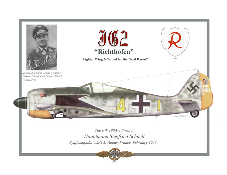 Focke Wulf Fw 190A 9.JG2 Yellow 4 Siegfried Schnell WNr 746 Vannes France Feb 1943 0J