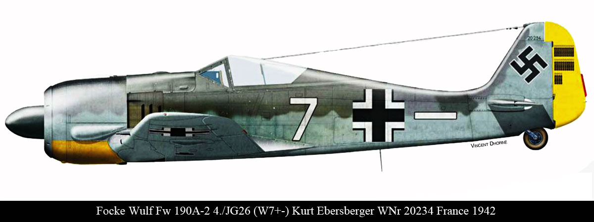 Focke Wulf Fw 190A2 4.JG26 White 7 Kurt Ebersberger WNr 20234 France 1942 0A
