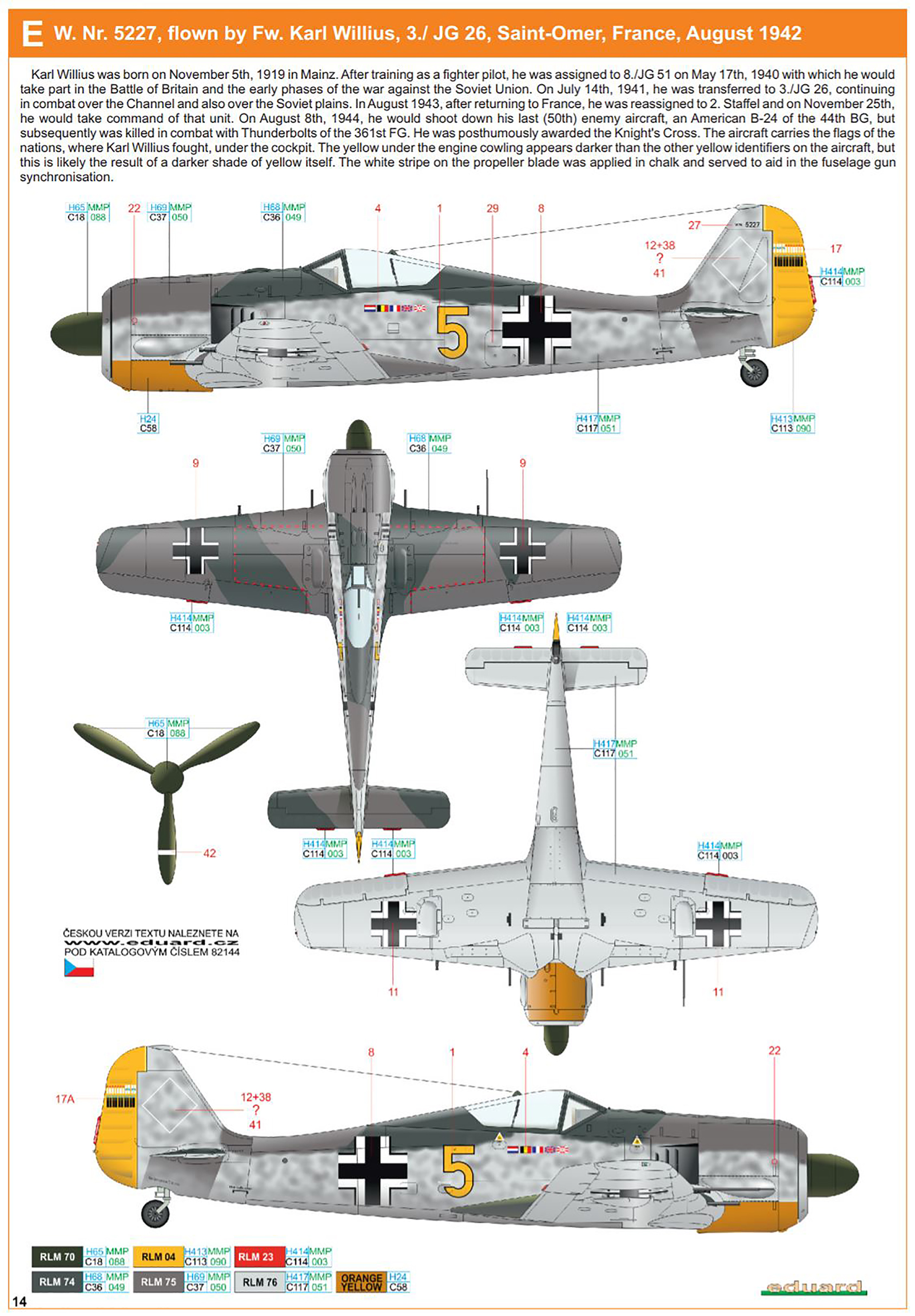 Focke Wulf Fw 190A3 3.JG26 Yellow 5 Karl Willius WNr 5227 Saint Omer France Aug 1942-0B