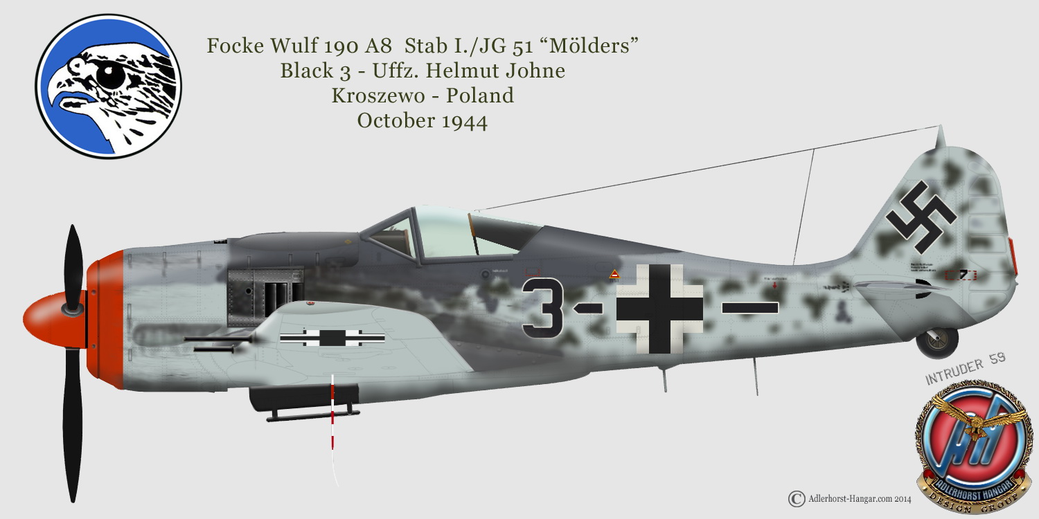 Focke Wulf Fw 190A8 Stab I.JG 51 Black 3 Helmut Johne Kroszewo Poland Oct 1944-0A