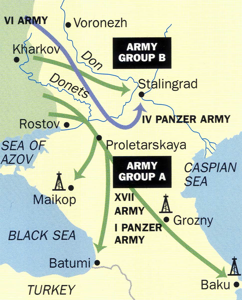 A map showing movements of German forces attacking Stalingrad during July 1942 0A