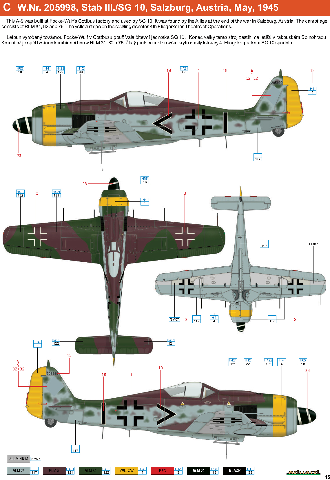 Focke Wulf Fw 190A9 Stab SG10 Chevron and Bar WNr 205998 Saltzburg Austria 1945-0B