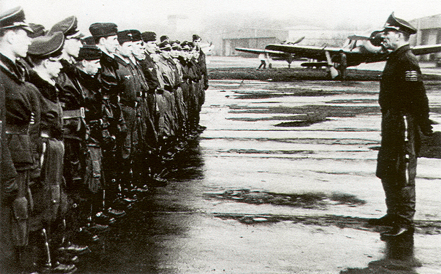 Aircrew Sturmstaffel 1 pilots being addressed by Jagddivision Walter Grabmann 1944 01