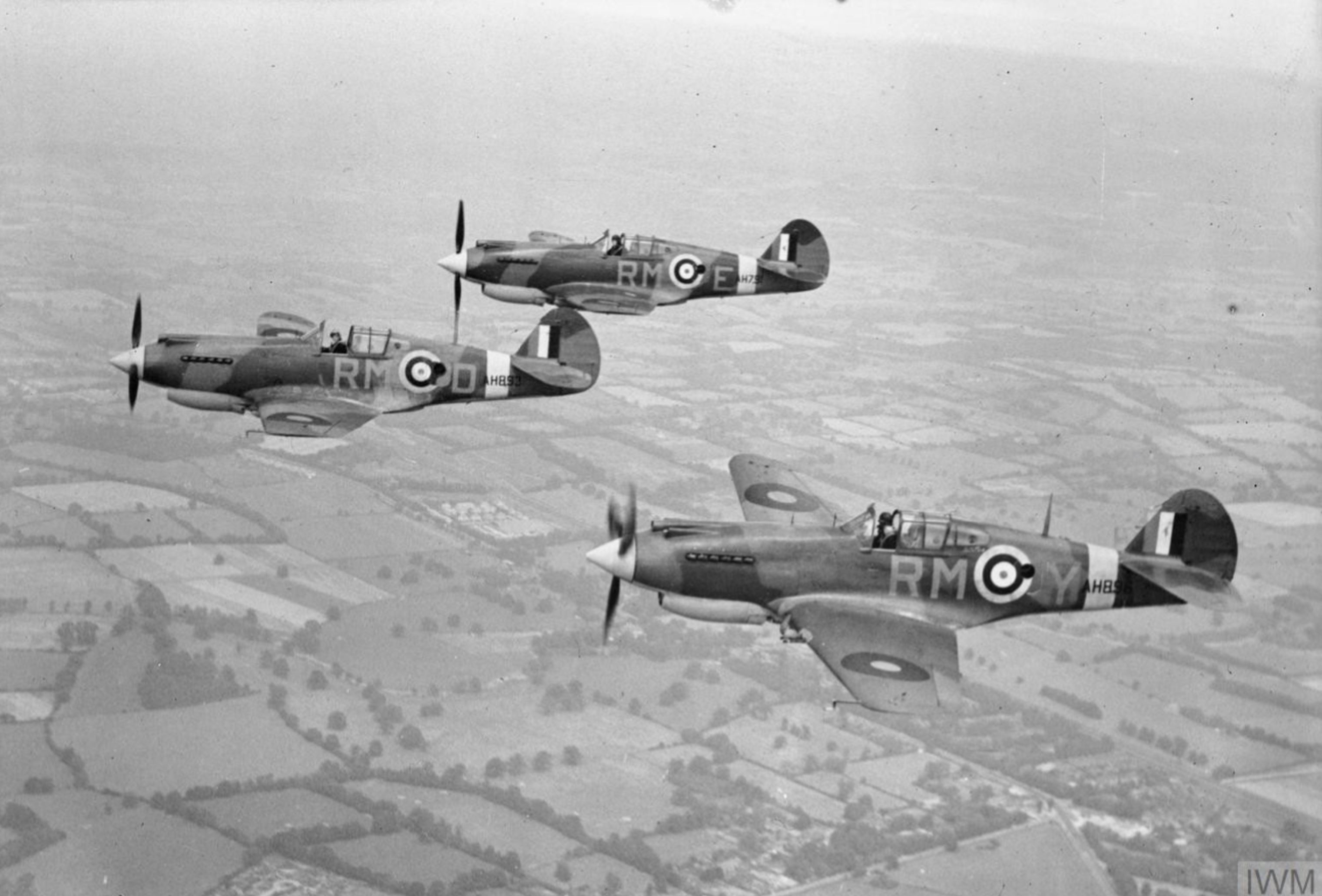 Curtiss Tomahawk II RAF 26Sqn RMY AH896 RMD AH893 and I RME AH791 based at Gatwick Sussex IWM CH5874