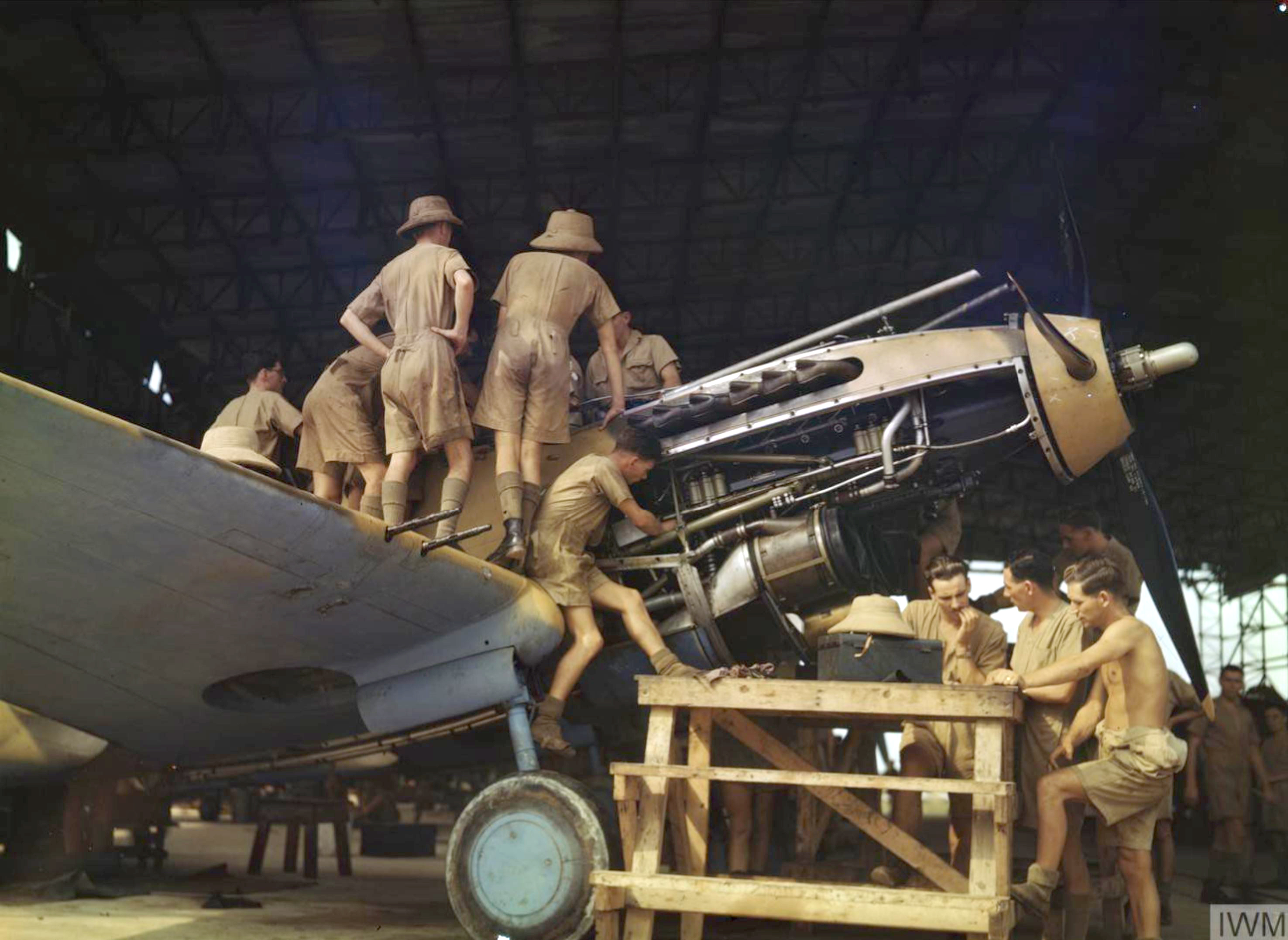 Curtiss Tomahawk RAF in a makeshift hangar maybe at Takoradi 1943 IWM TR824