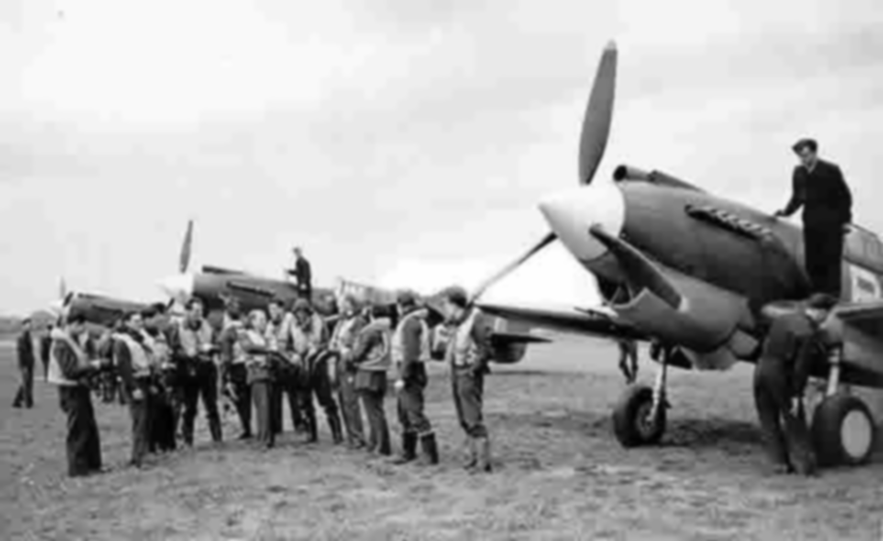 Aircrew RCAF 414Sqn pilots gather near RUF Fred Clarkes AK2xx usually based at Croydon England 1941 01