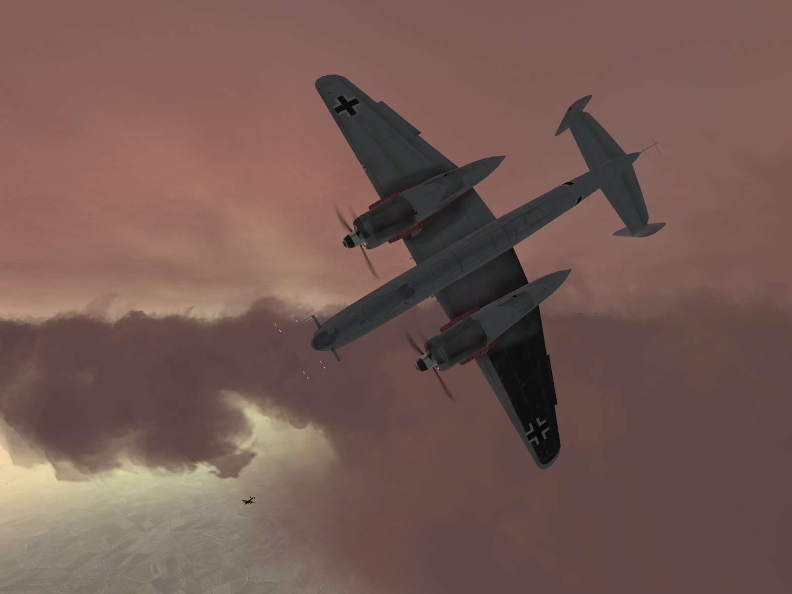 IL2 MH He 219A Nachtjager diving on a lone RAF Halifax 01