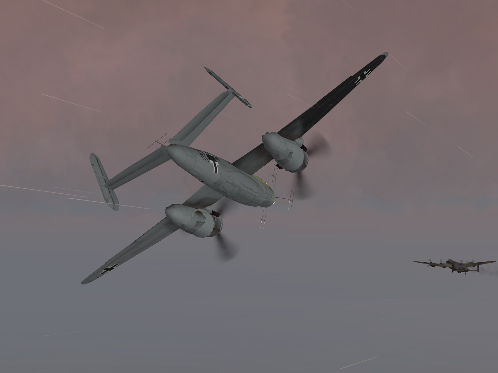 IL2 MH He 219A Nachtjager in aerial combat with a RAF Lancaster 01