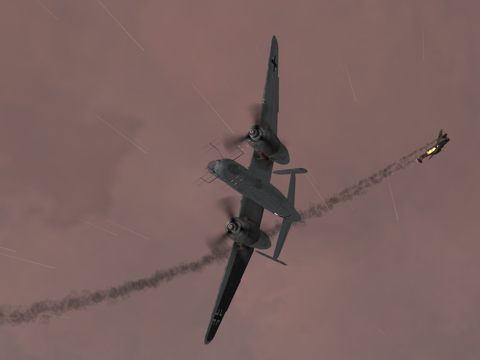IL2 MH He 219A Nachtjager in aerial combat with a RAF Lancaster 05