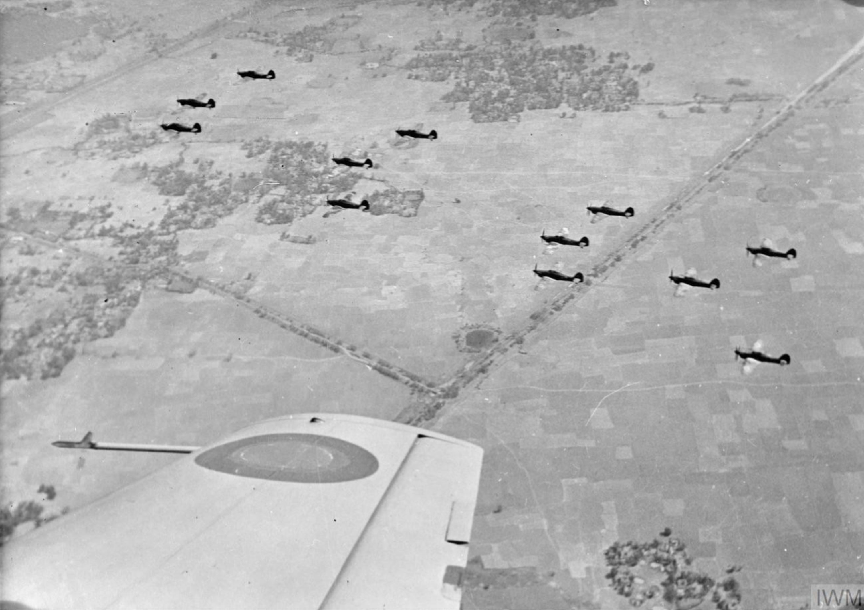 Hurricane IIc Trop RAF 166 Wing in flight from Chittagong in India May 1943-IWM CI190
