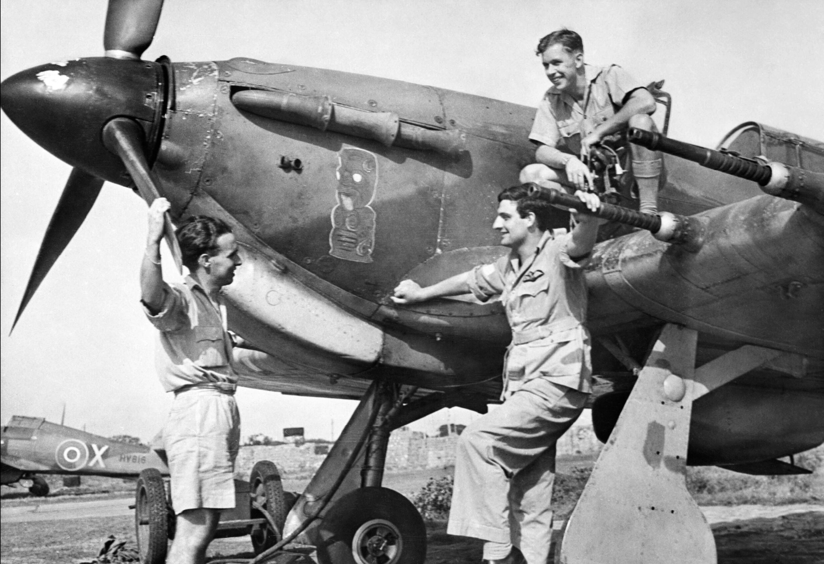 Hurricane IIc Trop RAF 224Sqn foreground X HV816 India 1942-43-IWM CI278