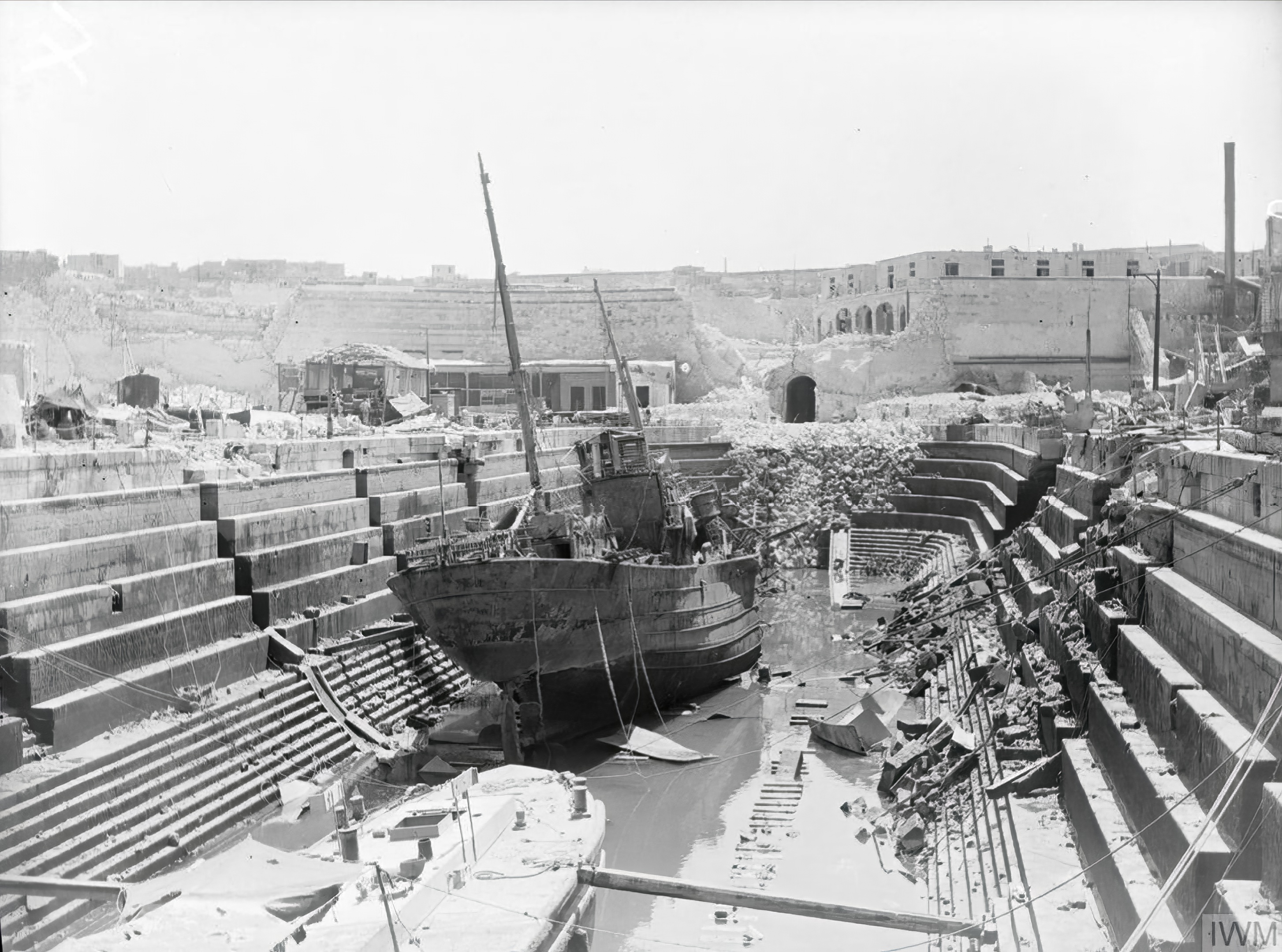 HMS Coral being broken up in Dry Dock no3 Grand Harbour Malta 19 24 Aug 1942-IWM A11487