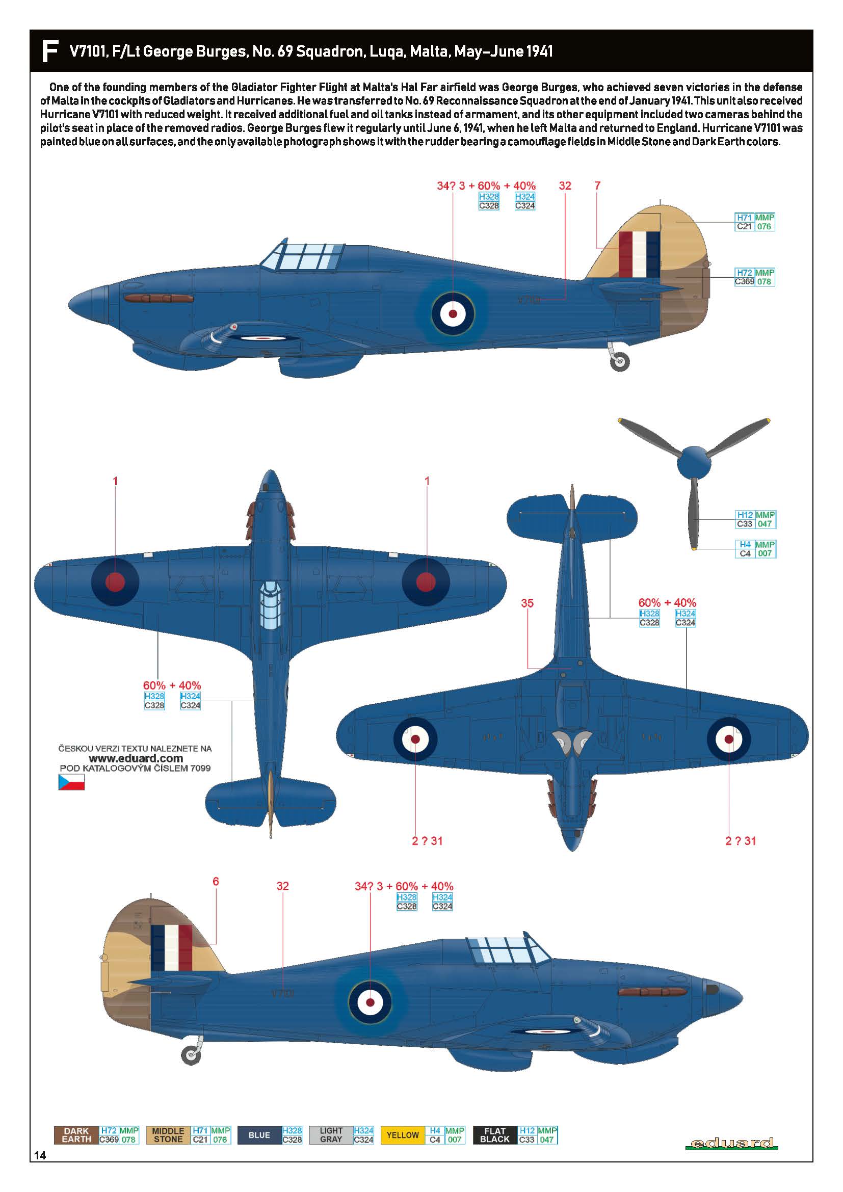 Hawker Hurricane I RAF 69Sqn FLt George Burges V7101 Luqa Malta May 1941-7099