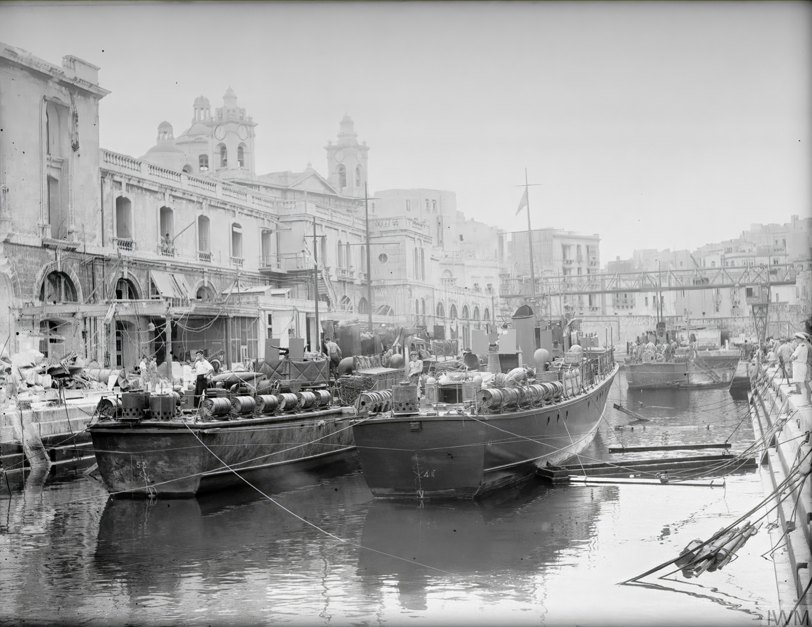 Motor Launches docked for repairs in no1 Grand Harbour Malta 19 24 Aug 1942-IWM A11492