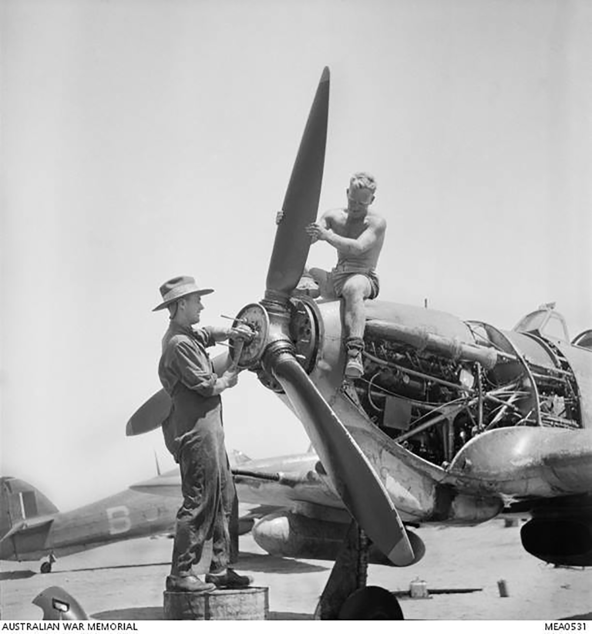 Hurricane IIc Trop RAAF 451Sqn propeller installation Egypt AWM 02