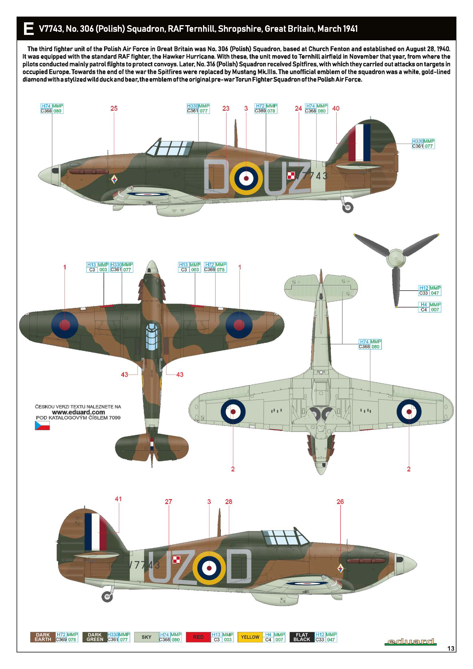 Hurricane I RAF 306Sqn (Polish) UZD V7743 RAF Ternhill Shropshire Great Britain Mar 1941 7099