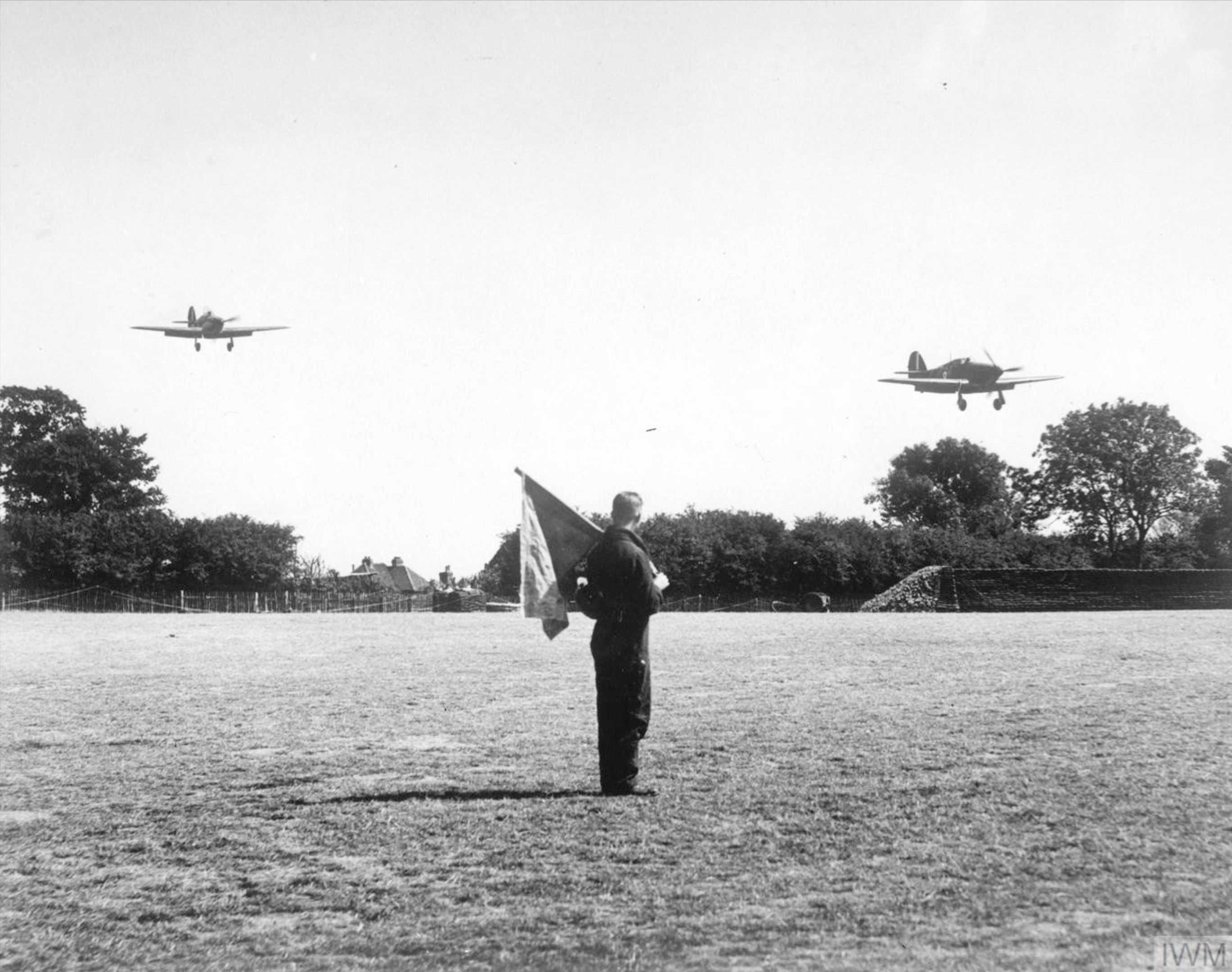 Hurricane I RAF 32Sqn GZZ landing at Biggin Hill England Aug 1940 IWM HU54519A
