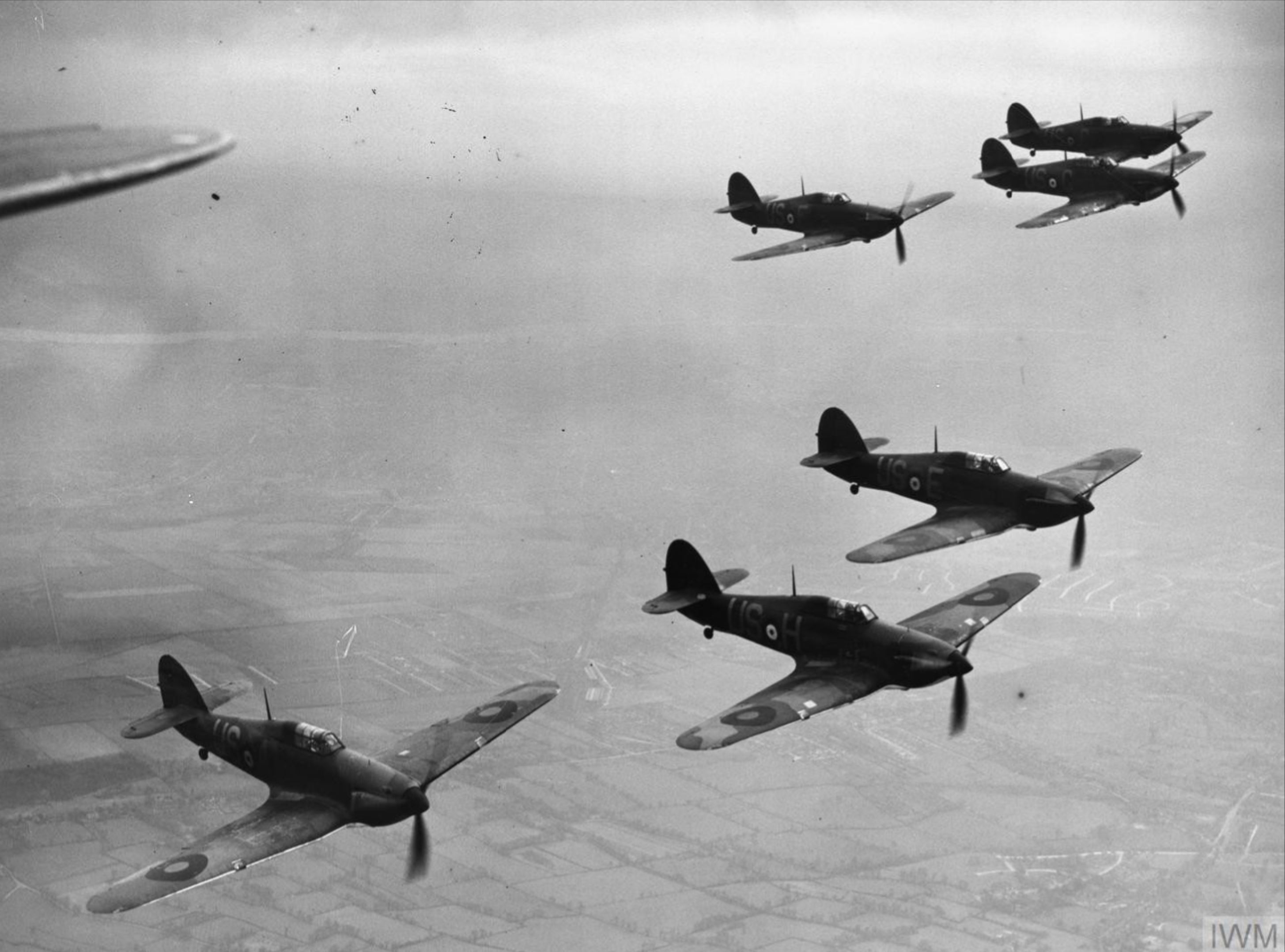 Hurricane V RAF 56Sqn in formation Apr 1940-IWM HU104756