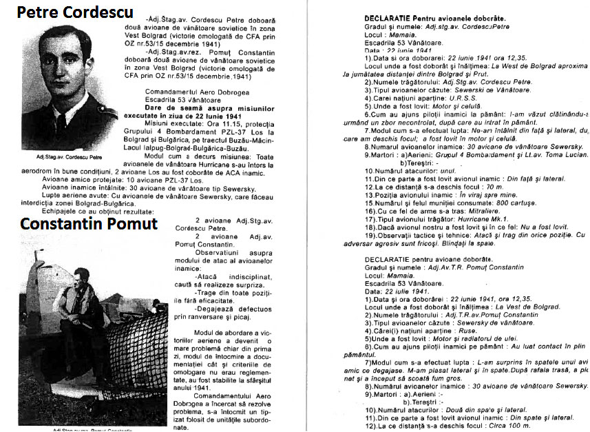 Aircrew Romanian pilot Petre Cordescu petre and Constantin Pomut combat report 0A