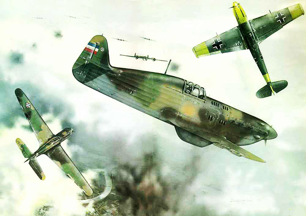 A painting of the Yugoslav Royal Air Force RYAF in combat with the Luftwaffe 0A