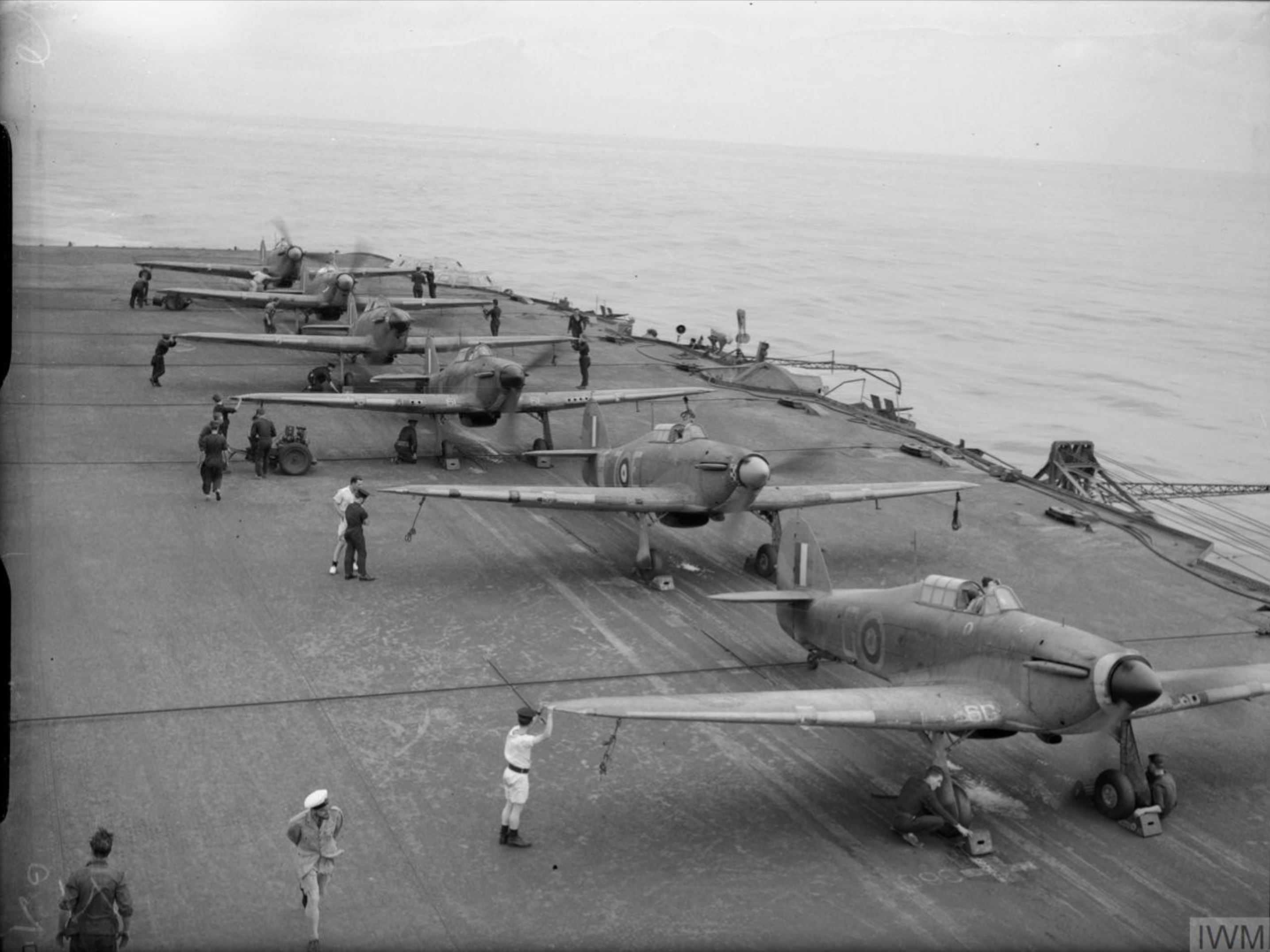 Fleet Air Arm 885NAS Sea Hurricane 6G Z4550 lined up for take off aboard HMS Victorious IWM A11286