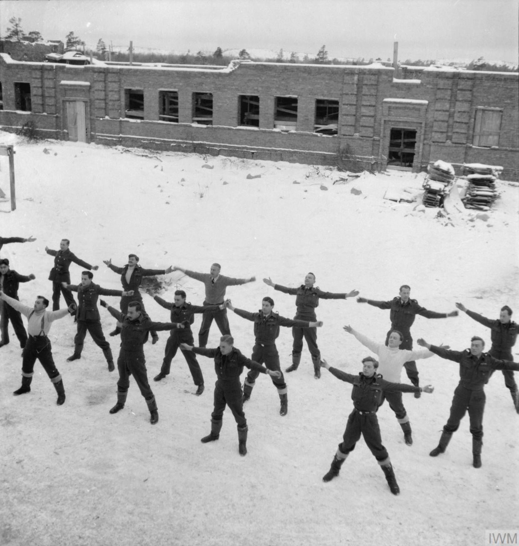 Aircrew from RAF 151 Wing doing their morning PT exercises Vaenga Murmansk USSR 1941-IWM CR142