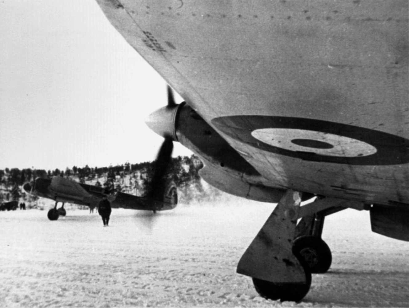 Hurricane IIb Trop RAF 151 Wing awaiting take off clearance Murmansk USSR winter 1941-01