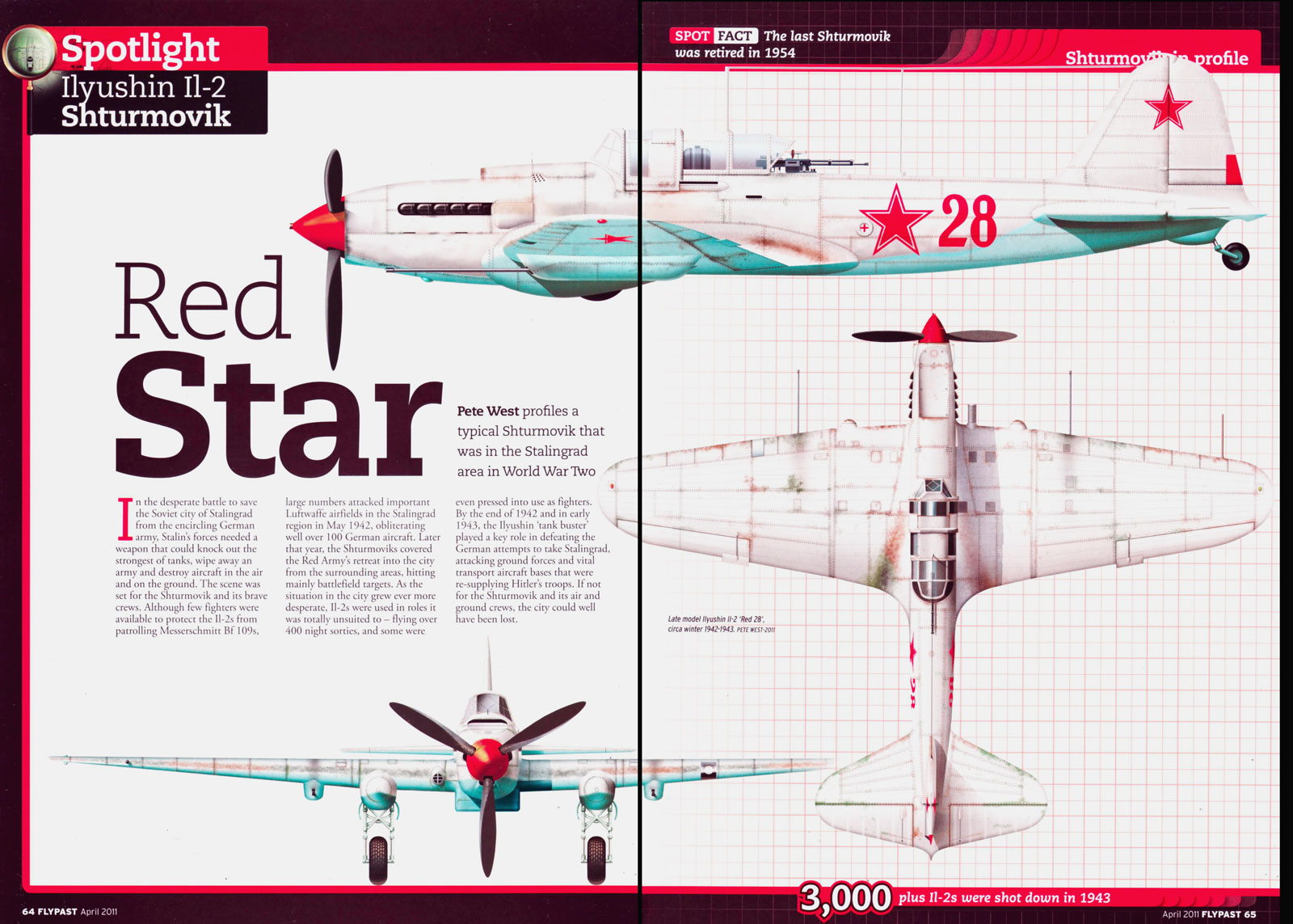 Artwork diagram of the Soviet Ilyushin Il 2M3 Shturmovik Red 28 winter colors by Flypast 0A