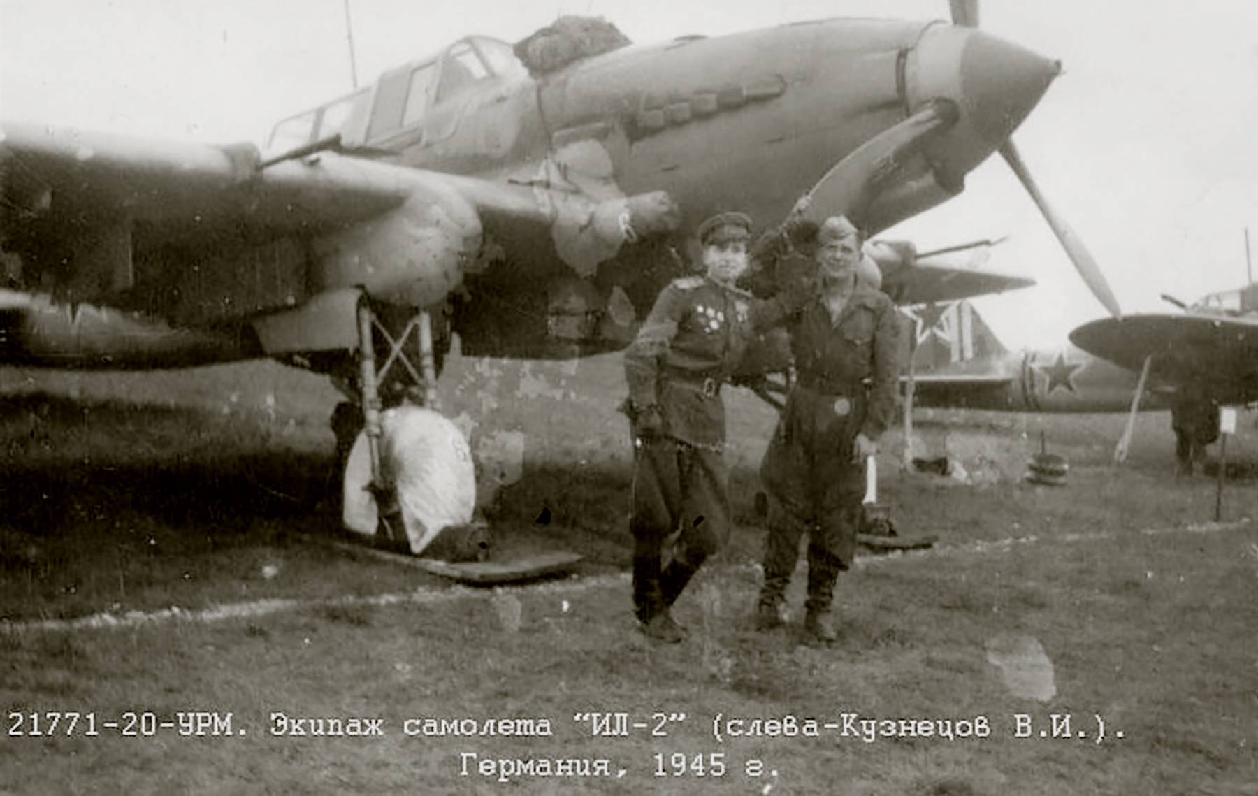 Ilyushin Il 2 Sturmovik 154GvShAP 307ShAD 3ShAK White 6 Viktor Ivanovich Kuznetsov (L) with a comrade 01