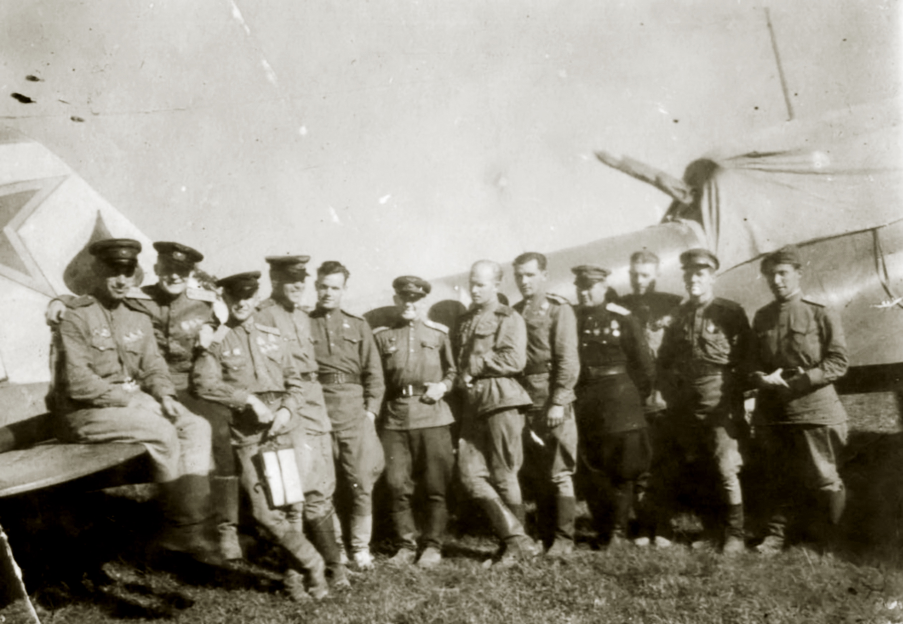 Ilyushin Il 2 Sturmovik 174GvShAP with HSU Nikolai Sergeevich Latskov (6th right) with his comrades 01