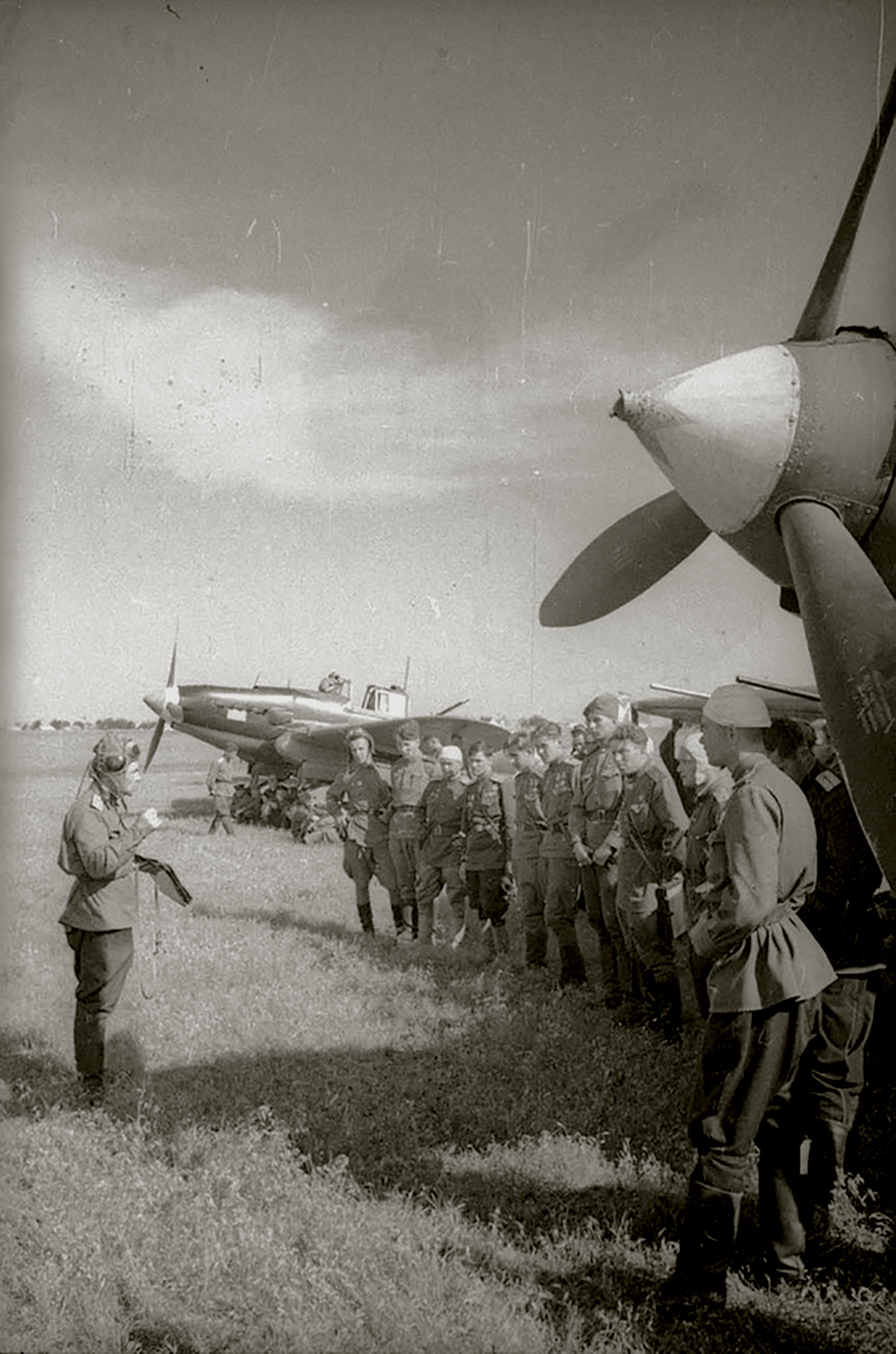 Ilyushin Il 2 Sturmovik 502ShAP group photo during mission briefing 1944 02