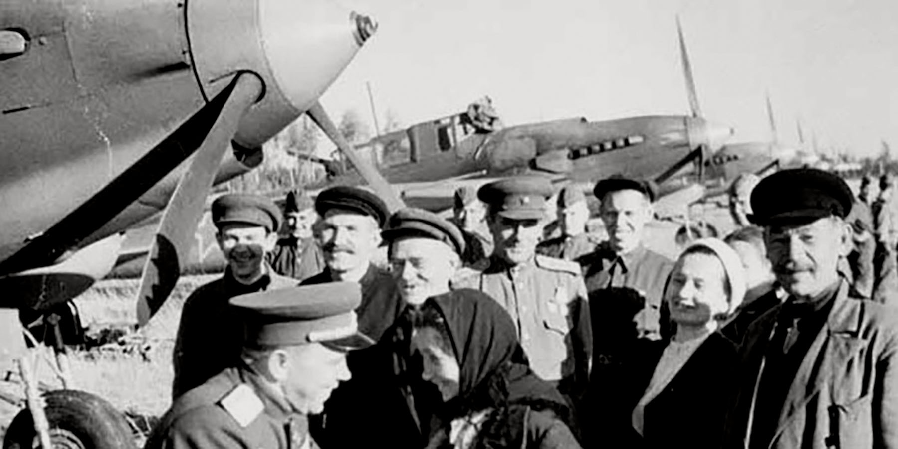 Ilyushin Il 2 Sturmovik 64ShAP MajGen V Shevchenko with Workers of the Ivanovo Front 1944 01