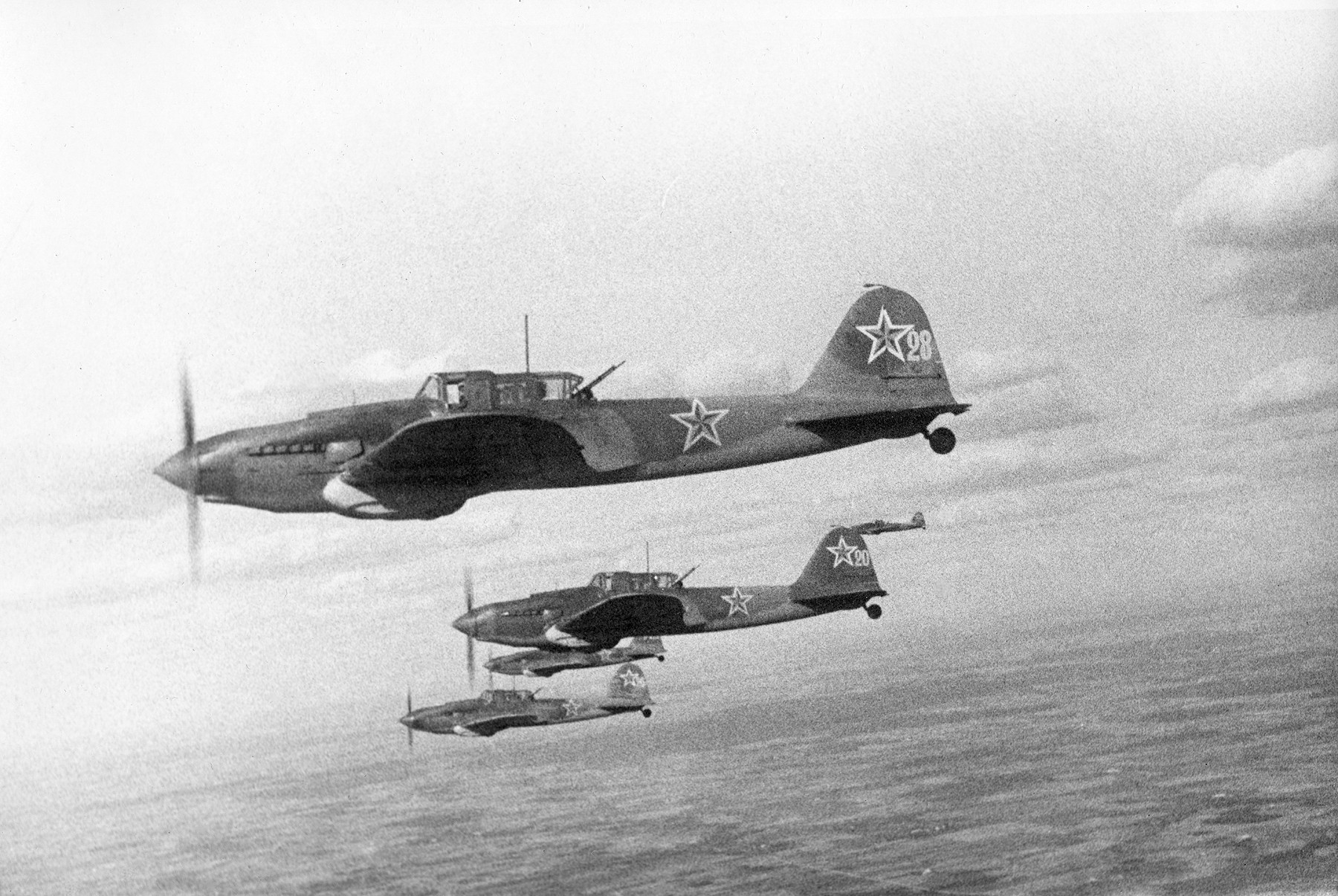 Ilyushin Il 2 Sturmovik 6GvShAP White 28 with White 20 inflight Aug 1944 01