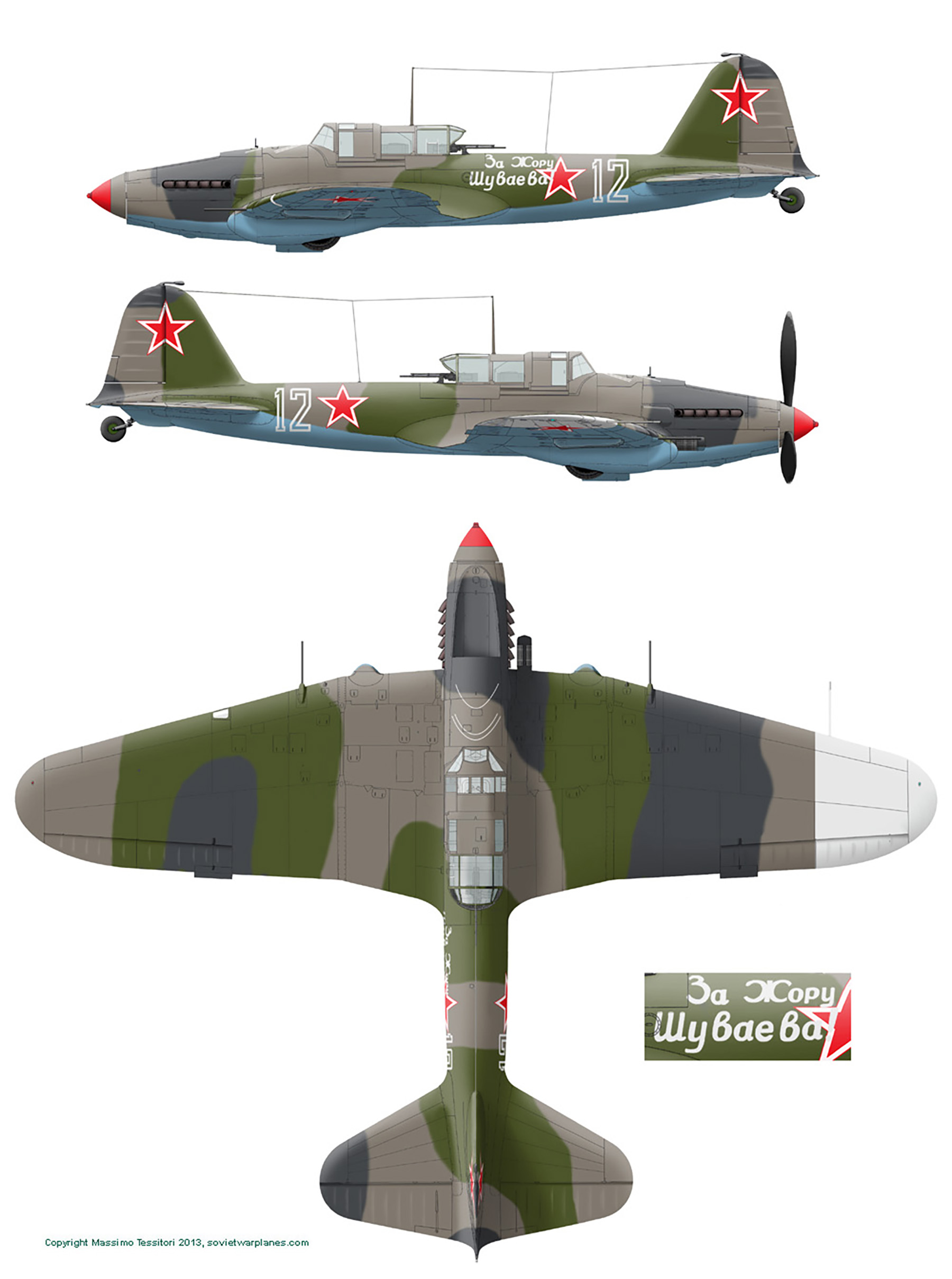 Ilyushin Il 2 Sturmovik 828ShAP White 12 slogan For Zhora Shuvaev profile by M Tessitori 0A