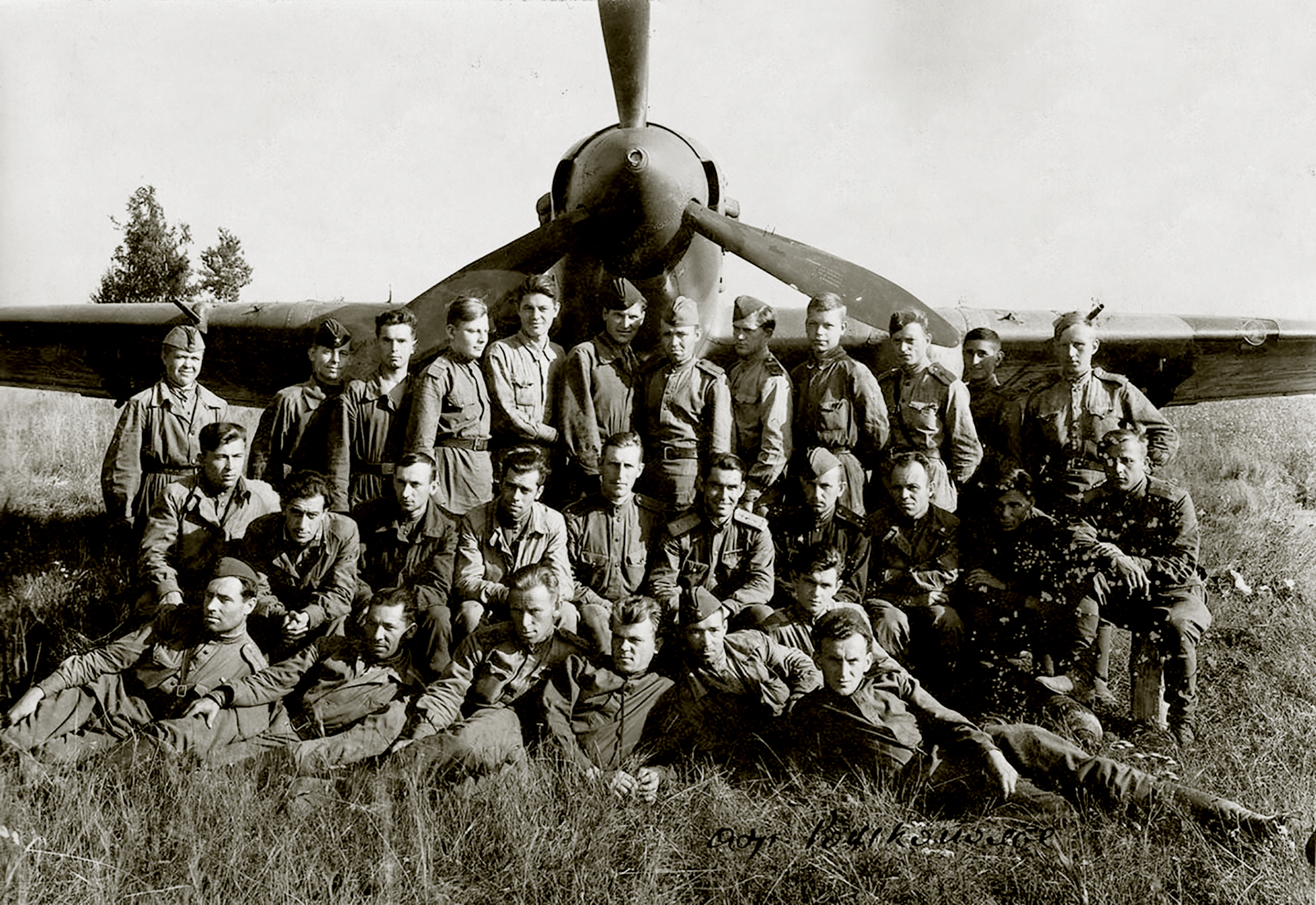 Ilyushin Il 2KR Sturmovik 151OKRAP 1Sqn group photo at the Rozhkopolye airfield 1944 01