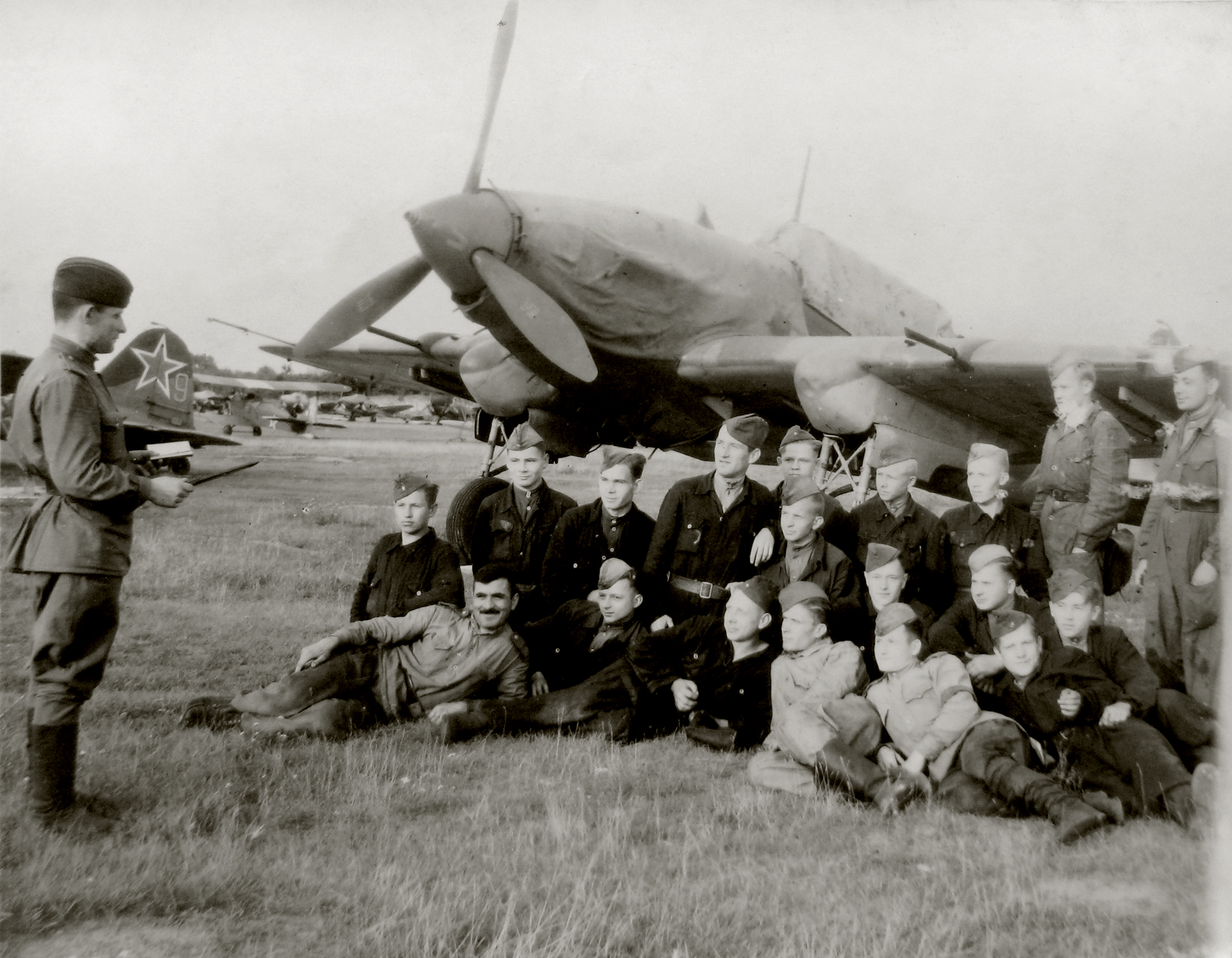 Ilyushin Il 2KR Sturmovik 93OKRAP with technical staff summer 1944 01