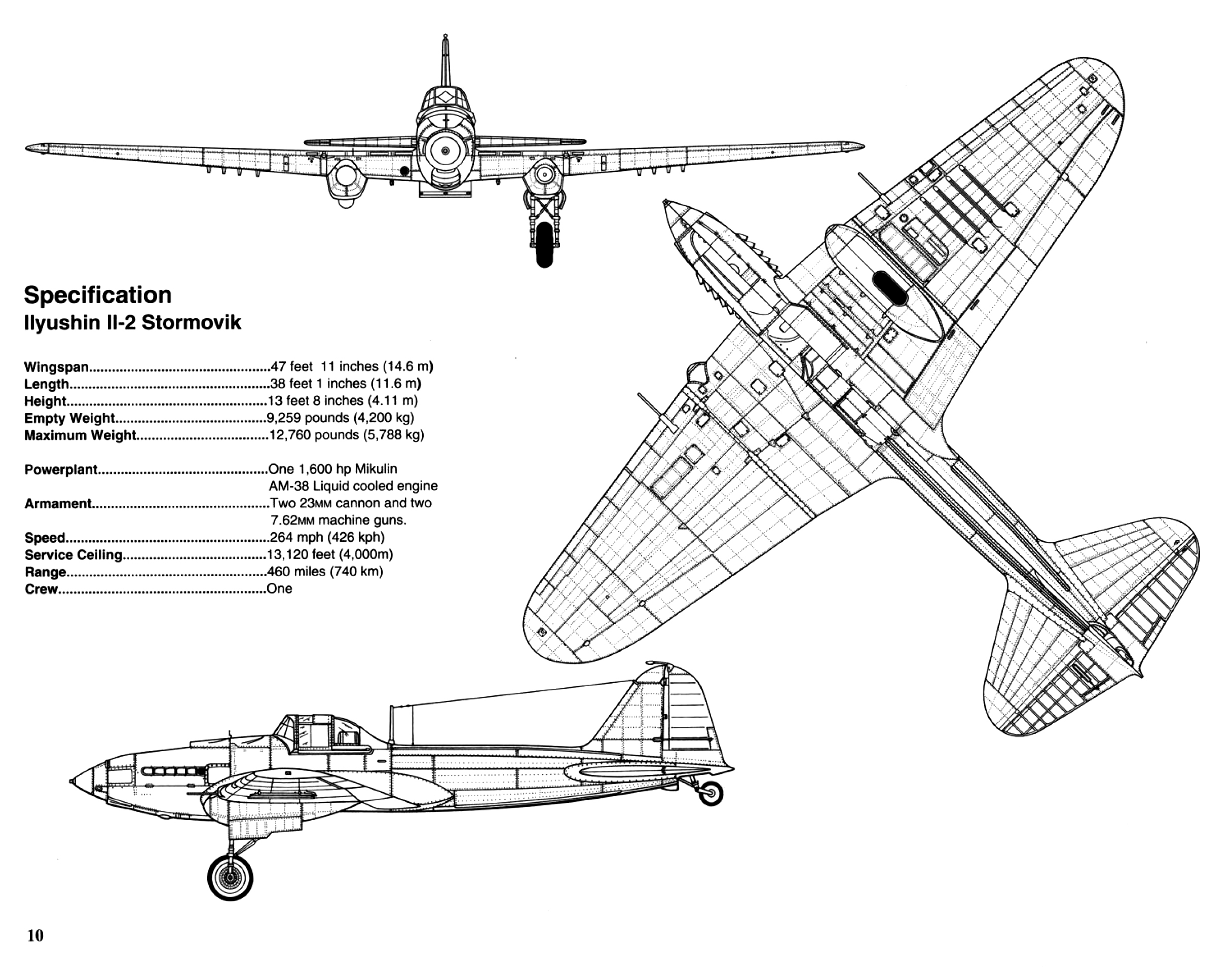 Technical drawing or blue print of Ilyushin Il 2 Shturmovik specifications from Signal 0A
