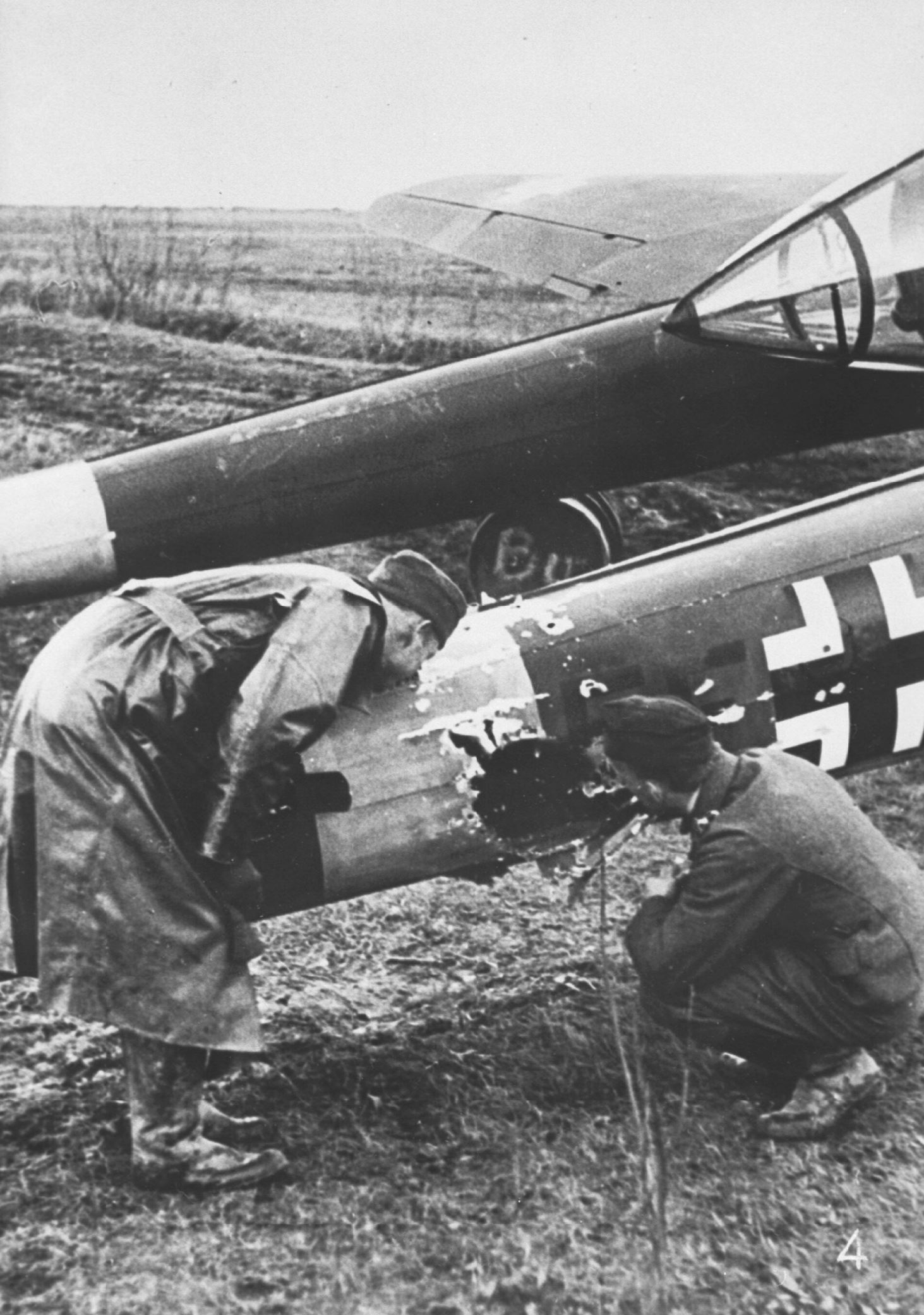 Luftwaffe Fw 189 crew examining flak damage after a mission 26th Nov 1941-NIOD