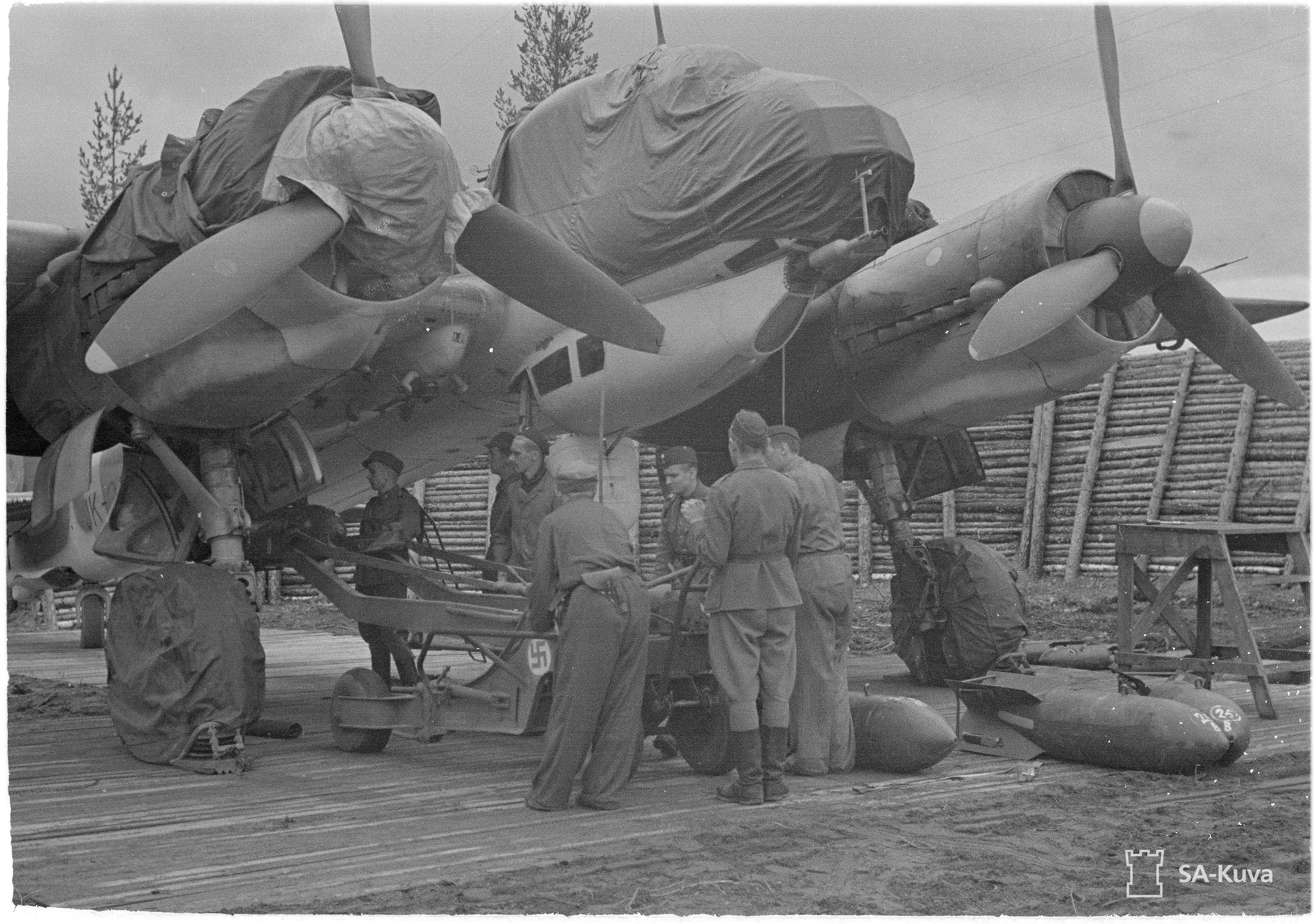 Junkers Ju 88A4 FAF LeLv44-being loaded with 250kg bombs Immolan 14th Jun 1944-05