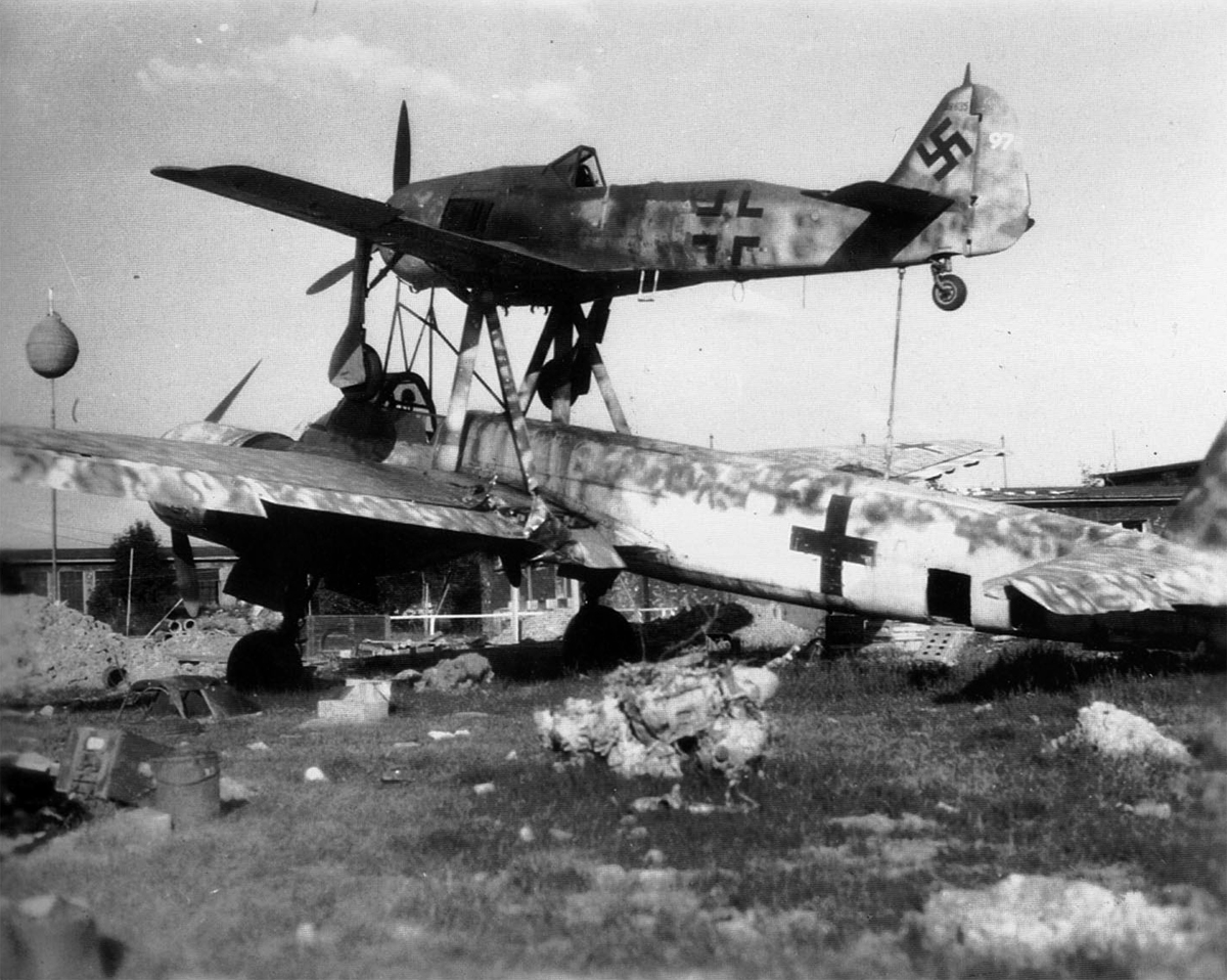 Junkers Ju 88G Mistel with Fw 190A7 white 97 WNr 2)39635 Merseburg 1945 01