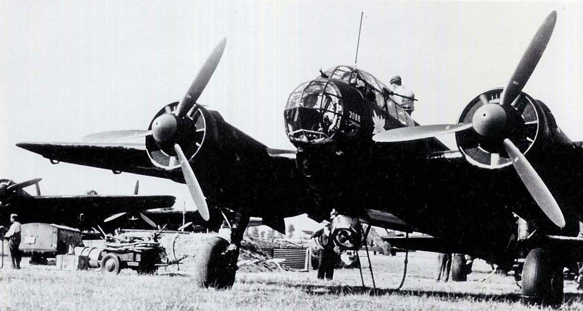 Certainly the most versatile German warplane of World War II, the Junkers Ju 88 in progressively improved versions continued in production throughout the war. It was originated to meet a requirement for a three-seat high-speed bomber and the first prototype, powered by two 746kW Daimler-Benz DB 600Aa engines, made its initial flight on 21 December 1936. Further prototypes followed, the third with 746kW Junkers Jumo engines and this, during evaluation, attained a speed of 520km/h. Such high performance encouraged record-breaking attempts, and in March 1939 the fifth prototype set a 1,000km closed-circuit record of 517km/h carrying a 2000kg payload. A total of 10 prototypes was completed, and the first of the pre-production Ju 88A-0 bombers flew in early 1939, the initial Ju 88A-1 production version entering service in September 1939.
