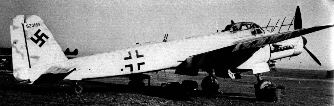 Certainly the most versatile German warplane of World War II, the Junkers Ju 88 in progressively improved versions continued in production throughout the war. It was originated to meet a requirement for a three-seat high-speed bomber and the first prototype, powered by two 746kW Daimler-Benz DB 600Aa engines, made its initial flight on 21 December 1936. Further prototypes followed, the third with 746kW Junkers Jumo engines and this, during evaluation, attained a speed of 520km/h. Such high performance encouraged record-breaking attempts, and in March 1939 the fifth prototype set a 1,000km closed-circuit record of 517km/h carrying a 2000kg payload. A total of 10 prototypes was completed, and the first of the pre-production Ju 88A-0 bombers flew in early 1939, the initial Ju 88A-1 production version entering service in September 1939.