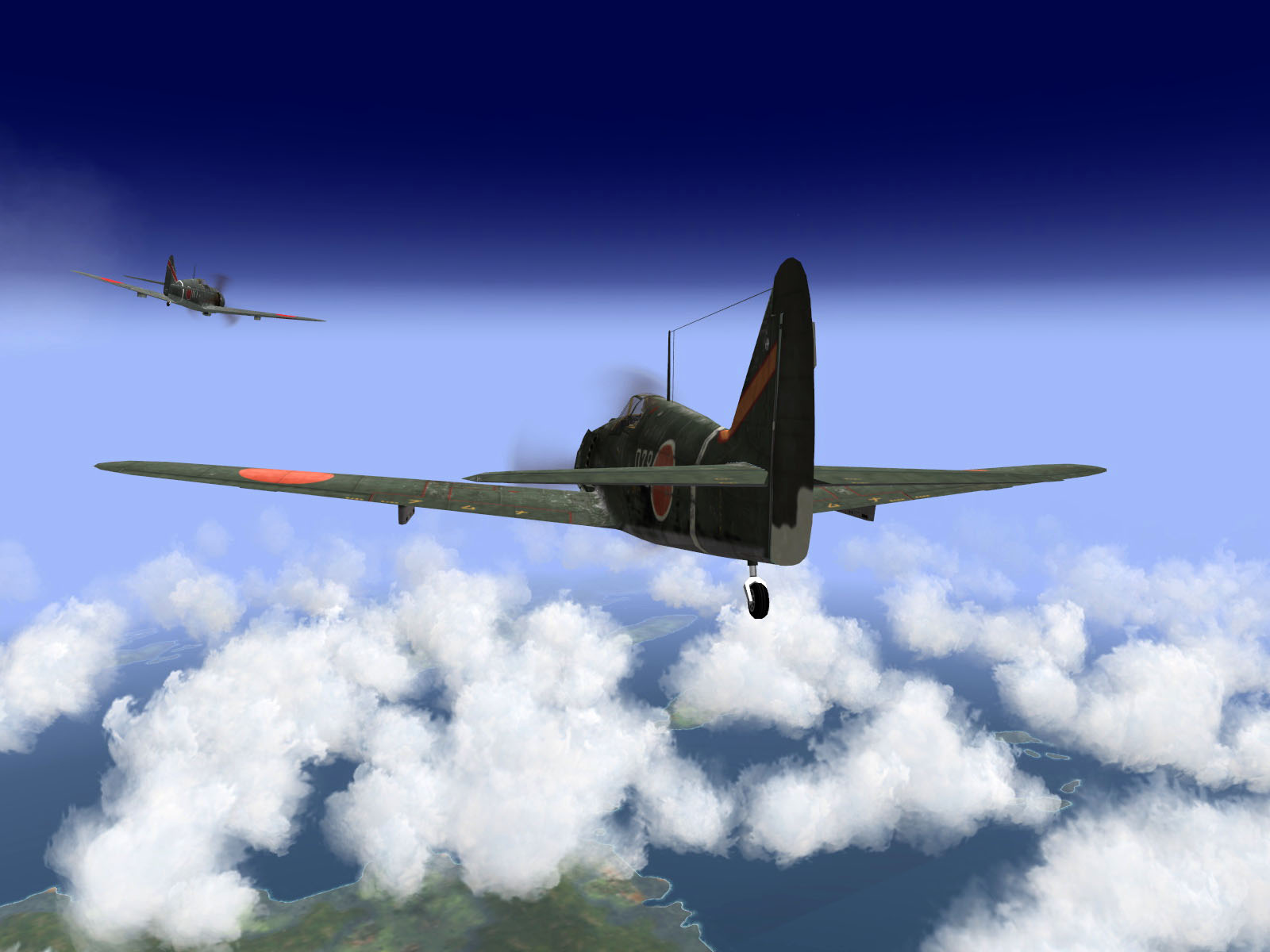 IL2 GB Ki 100 59 Sentai W078 in formation high over Japan V03