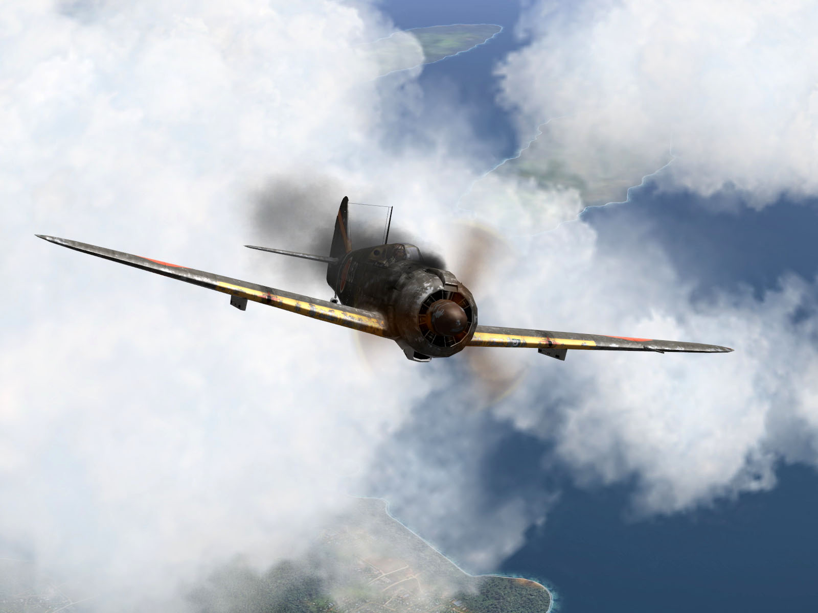 IL2 GB Ki 100 59 Sentai W153 nursing a damaged engine over Japan V07