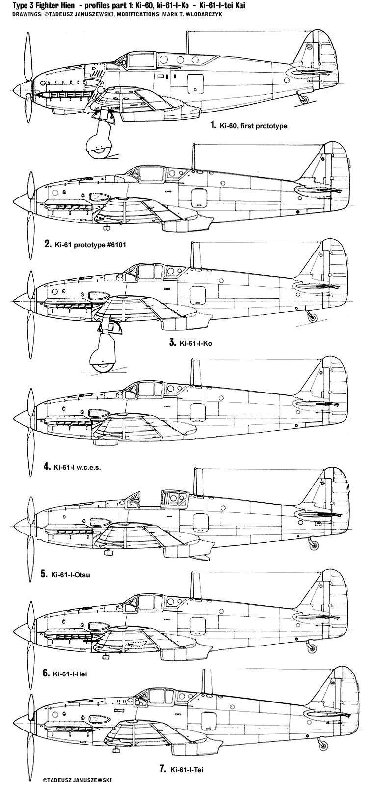 Art profile blueprints and technical drawings of Japanese fighter Kawasaki Ki-61 Tony 01