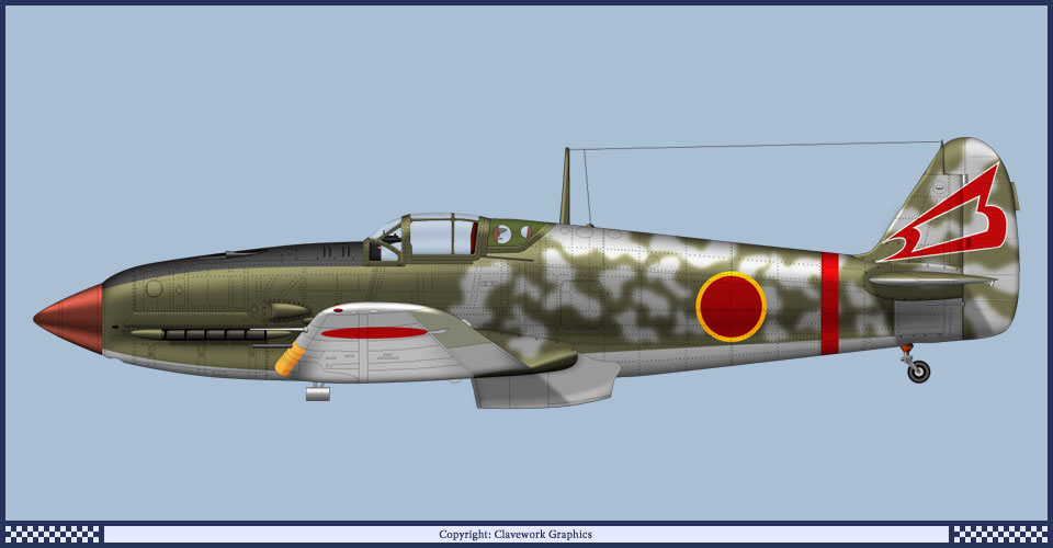 Kawasaki Ki-61 Hien 飛燕 - 'Flying Swallow' National origin:- Japan Role:- Fighter Manufacturer:- Kawasaki Kōkūki Kōgyō K.K. First flight:- December 1941 Introduction:- 1942 Retired:- 1945 (Japan) Primary users:- Imperial Japanese Army Air Service, Chinese Nationalist Air Force, People's Liberation Army Air Force Produced between 1940 - 1945:- 3,078 Variants:- Kawasaki Ki-100 The Kawasaki Ki-61 Hien (飛燕, 'flying swallow') is a Japanese World War II fighter aircraft used by the Imperial Japanese Army Air Service. The Japanese Army designation was 'Army Type 3 Fighter' (三式戦闘機). Allied pilots initially believed Ki-61s were Messerschmitt Bf 109s and later an Italian aircraft, which led to the Allied reporting name of 'Tony', assigned by the United States War Department. It was the only mass-produced Japanese fighter of the war to use a liquid-cooled inline V engine. Over 3,000 Ki-61s were produced. Initial prototypes saw action over Yokohama during the Doolittle Raid on 18 April 1942, and continued to fly combat missions throughout the war.