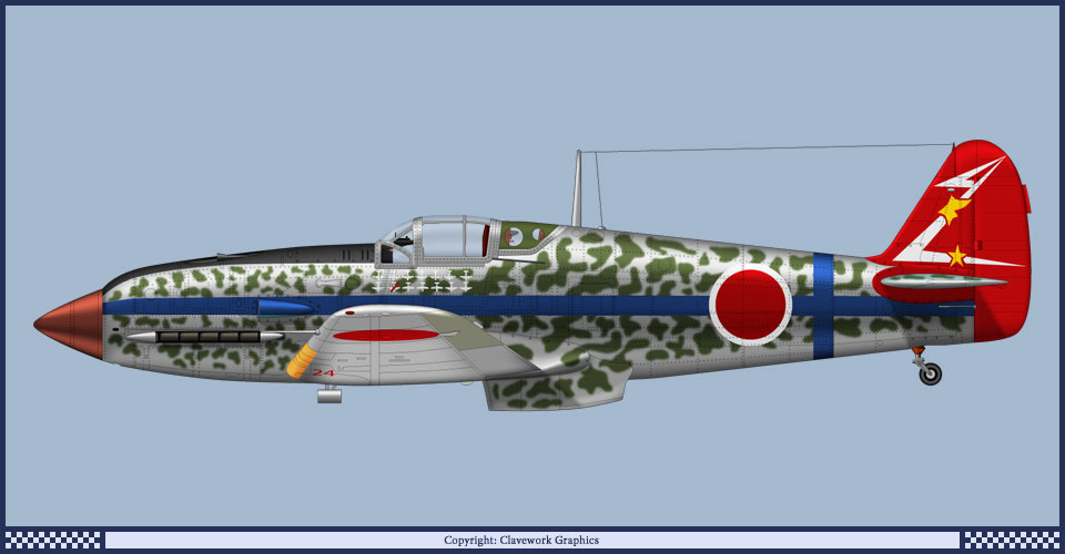 Artwork Tony Ki-61 244-Sentai R24 Blue Tembico Kobayashi 14 kills Japan 1945-0B