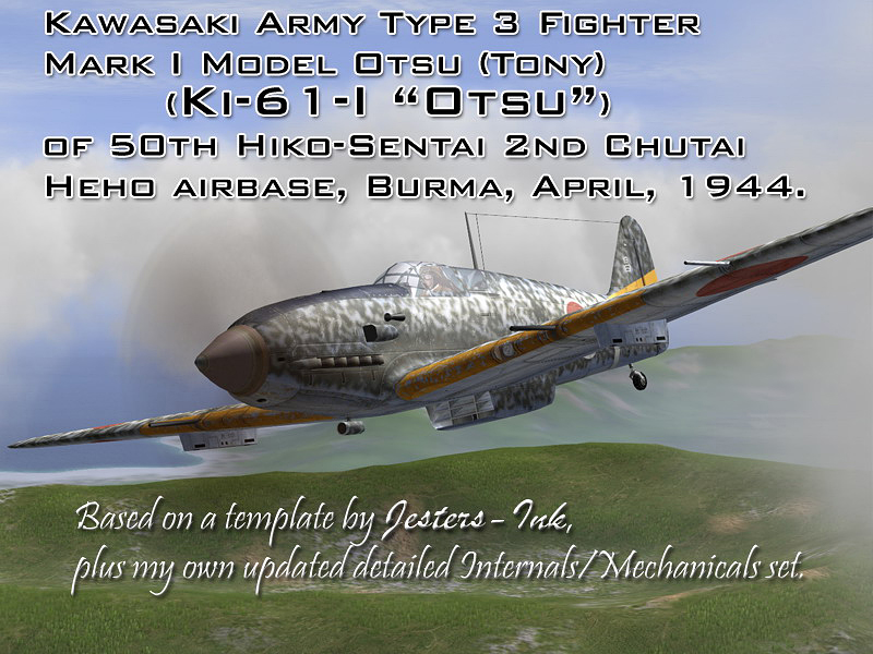 Kawasaki Ki-61 Hien 飛燕 - 'Flying Swallow' National origin:- Japan Role:- Fighter Manufacturer:- Kawasaki Kōkūki Kōgyō K.K. First flight:- December 1941 Introduction:- 1942 Retired:- 1945 (Japan) Primary users:- Imperial Japanese Army Air Service, Chinese Nationalist Air Force, People's Liberation Army Air Force Produced between 1940 - 1945:- 3,078 Variants:- Kawasaki Ki-100 The Kawasaki Ki-61 Hien (飛燕, 'flying swallow') is a Japanese World War II fighter aircraft used by the Imperial Japanese Army Air Service. The Japanese Army designation was 'Army Type 3 Fighter' (三式戦闘機). Allied pilots initially believed Ki-61s were Messerschmitt Bf 109s and later an Italian aircraft, which led to the Allied reporting name of 'Tony', assigned by the United States War Department. It was the only mass-produced Japanese fighter of the war to use a liquid-cooled inline V engine. Over 3,000 Ki-61s were produced. Initial prototypes saw action over Yokohama during the Doolittle Raid on 18 April 1942, and continued to fly combat missions throughout the war.