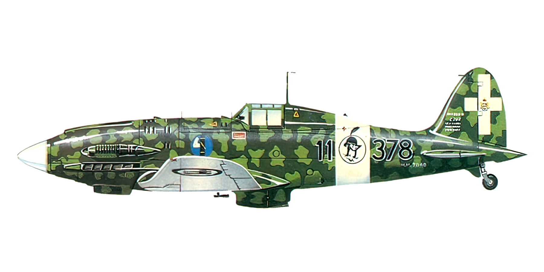 The Macchi C.202 Folgore (Italian 'thunderbolt') was a World War II fighter aircraft built by Macchi Aeronautica and operated mainly by the Regia Aeronautica (RA; Royal (Italian) Air Force). Macchi aircraft designed by Mario Castoldi received the 'C' letter in their model designation, hence the Folgore is referred to as the C.202 or MC.202. The C.202 was a development of the earlier C.200 Saetta, with an Italian-built version of the Daimler-Benz DB 601Aa engine and a redesigned, more streamlined fuselage.[2] Considered to be one of the best wartime fighters to serve in large numbers with the Regia Aeronautica,[3] the Folgore operated on all fronts in which Italy was involved.[4]
