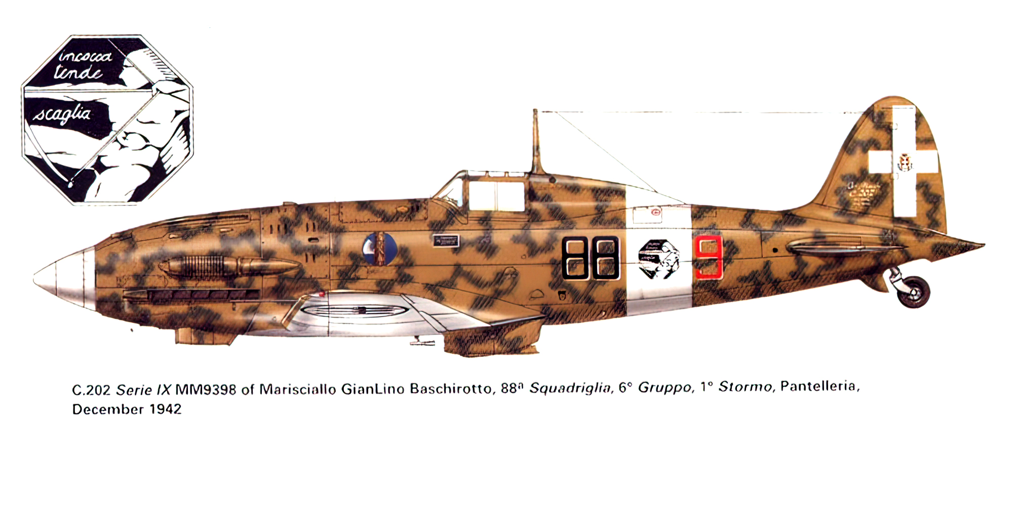 RA Macchi MC202 Folgore 1 Stormo 6 Gruppo 88 Sqa 88 9 Marisciallo Baschirotto MM9398 Pantelleria Dec 1942 0A